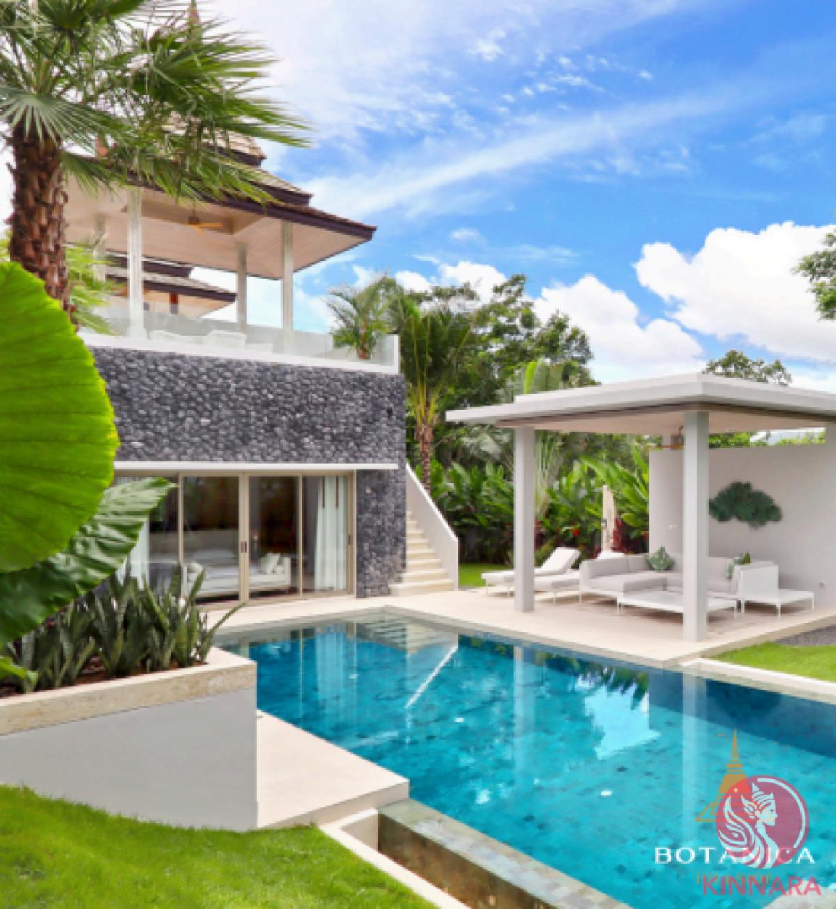 Botanica Hillside Type A.1Nestled elegantly on a gentle hillside in the highly coveted Cherng Talay area, Botanica Hillside offers a touch of Balinese charm and contemporary style. Developed by one of Phukets most renowned villa developers, this exclusive project comprises 12 exquisitely designed modern villas, showcasing a seamless fusion of Balinese aesthetics and modern luxury.Set on generously sized plots ranging from 531 sqm to 1026 sqm, these 3 or 4-bedroom villas boast a unique U-shaped layout that maximizes space and privacy. Step inside to discover airy open-plan living and dining areas, seamlessly connected to a well-appointed kitchen complete with a central breakfast bar. The master bedrooms feature spacious ensuite bathrooms equipped with separate bathtubs and showers, while the guest bedrooms offer convenient en-suite shower facilities.For those seeking ultimate relaxation and entertainment, select villas boast a rooftop terrace crowned with a traditional Balinese-style sala. This idyllic setting is perfect for hosting family gatherings, intimate parties, or simply unwinding in style amidst tropical surroundings. With easy access to a wide array of amenities, attractions, and services, Botanica Hillside presents a rare opportunity to experience luxurious island living at its finest.