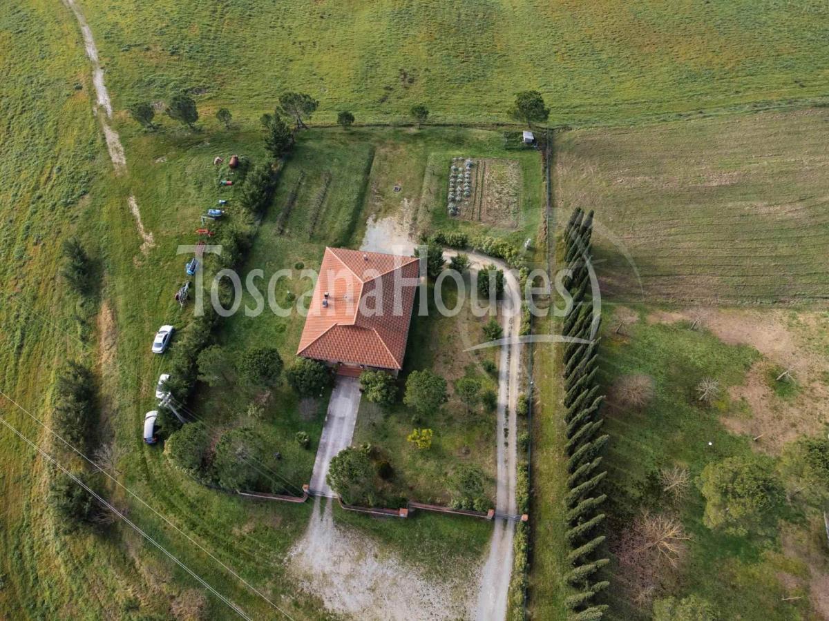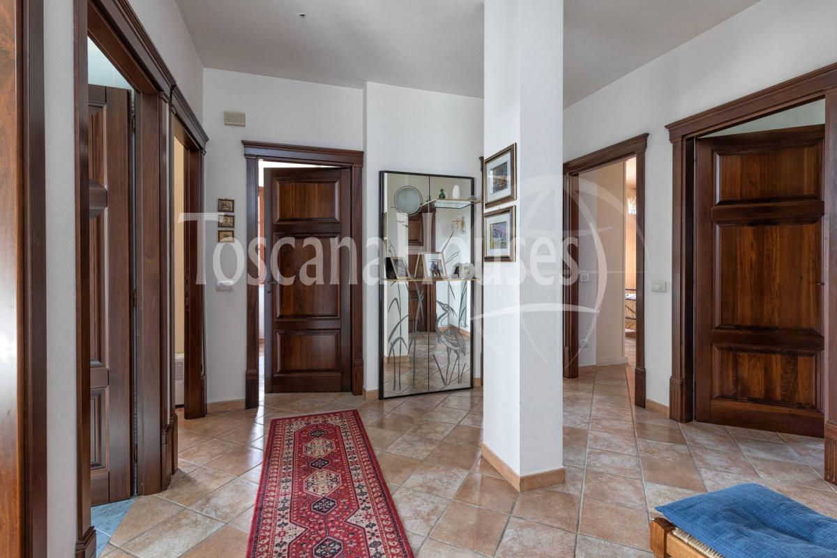 Ground floor: 3 bedrooms, 3 bathrooms, a spacious double living room with a fireplace, a kitchenette, and wide corridors. Floors feature characteristic Tuscan terracotta, while the bathrooms have modern tiles and natural light.