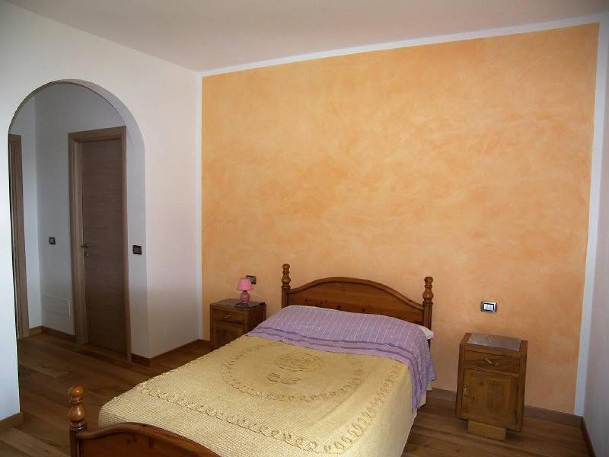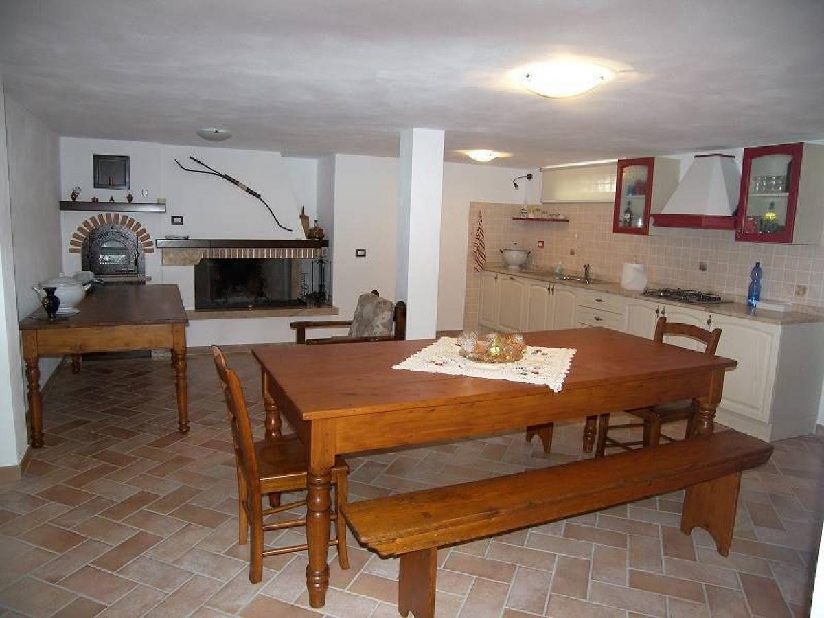 The villa is thoughtfully designed across multiple levels. The basement level includes a large garage, a cellar, a laundry room, a bathroom, a living area currently used as a taverna with a fireplace and pizza oven, and a storage room. On the raised ground floor, there is an outdoor portico, the main entrance, a bright living room with a fireplace and terrace, a kitchen with a veranda, a corridor, two bedrooms, a bathroom, and a master bedroom with a dressing room, walk-in closet, and en-suite bathroom.