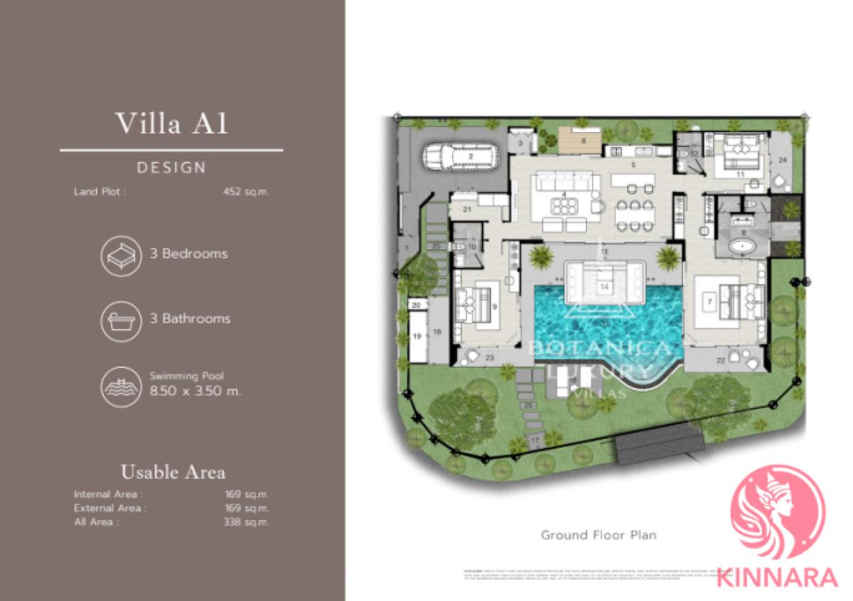 Botanica Louvre Type A1Nestled in the highly coveted Pasak region of Cherng Talay, the Botanica Louvre Villa beckons with its exquisite offering of upscale pool residences, tailored to fulfill both familial dreams and savvy investment endeavors.Picture this a collection of eight sleek, single-story pool villas, each meticulously designed in a captivating U-shaped layout, enveloping a secluded oasis of private swimming splendor.Step into luxury as you enter the expansive open-plan living and dining spaces, seamlessly blending modern elegance with practical functionality. Your culinary aspirations find their perfect match in the state-of-the-art kitchen, complete with a chic breakfast bar for casual dining.Discover blissful retreats in three sumptuous bedrooms, where the master and guest bedroom 1 indulge in direct pool access and opulent ensuite sanctuaries. The pice de rsistance The master bathroom, a lavish haven boasting a standalone bathtub, rejuvenating shower enclave, and an alfresco shower experience for unparalleled relaxation. Meanwhile, guest bedroom 2 shares its own sleek bathroom, perfectly positioned for seamless living and entertaining.Greet each day beneath soaring gable ceilings that exude an air of grandeur, while glass doors beckon you to a sprawling pool terrace, inviting you to bask in the tranquil allure of your private aquatic haven. Embark on a journey of unparalleled luxury and investment potential at Botanica Louvre Villa where every moment is a testament to refined living.button class=btn relative btn-secondary btn-small shadow-lgbutton