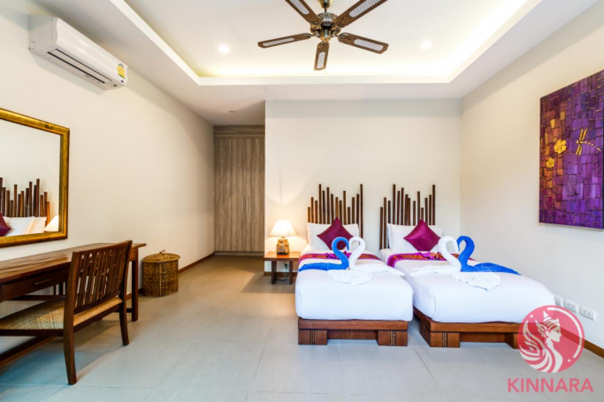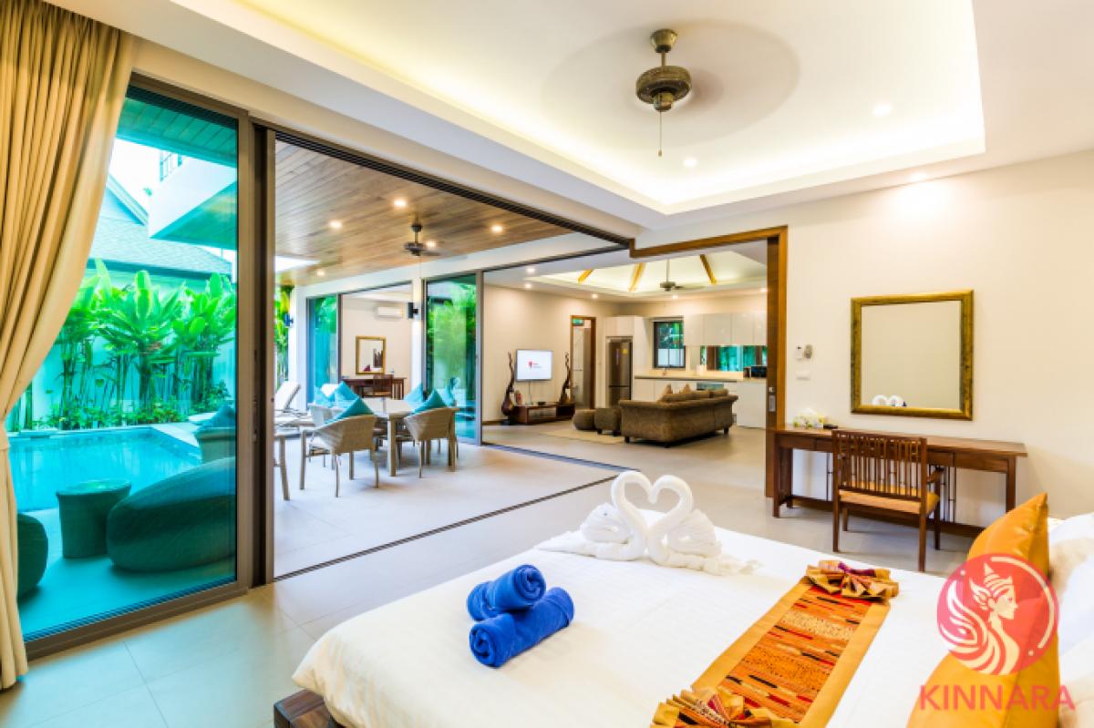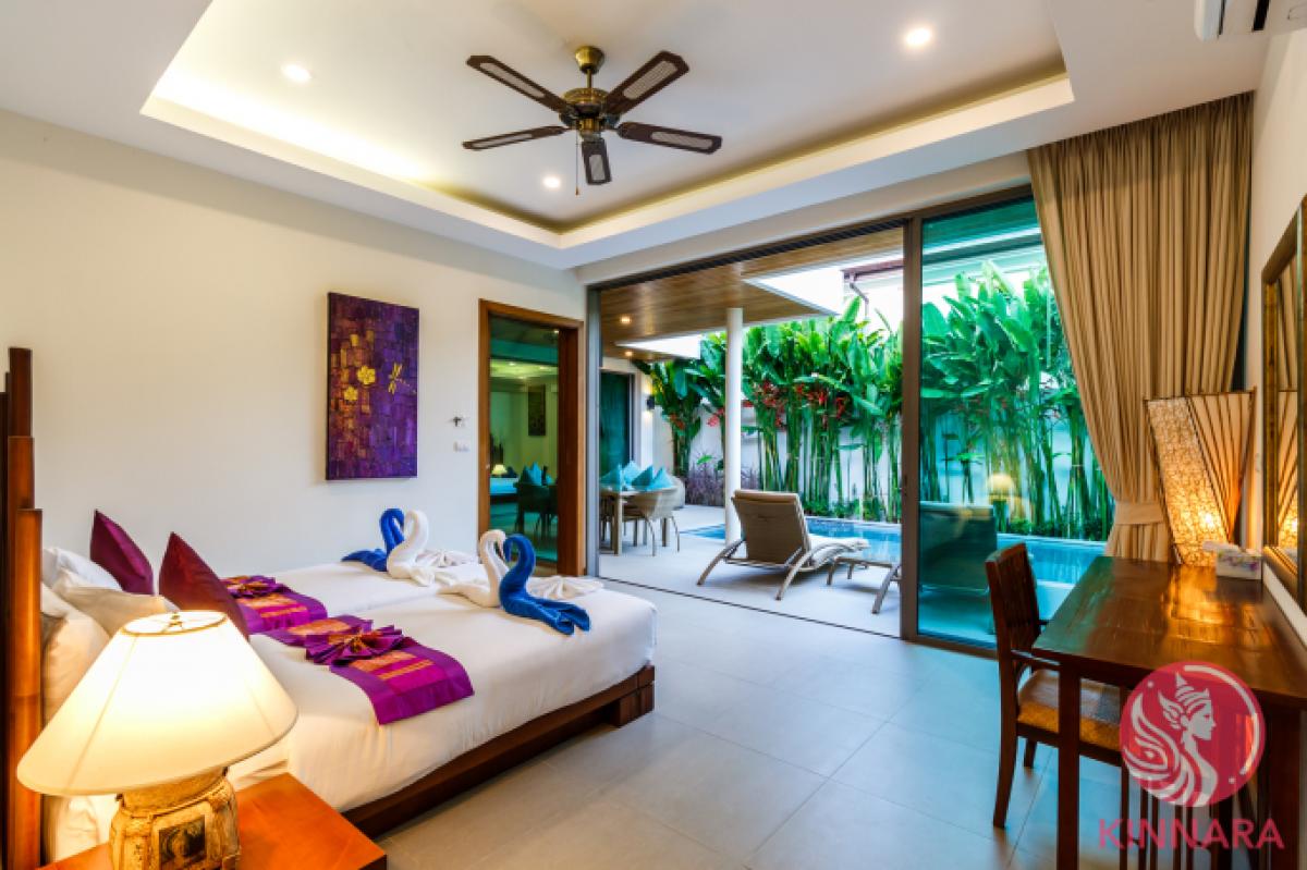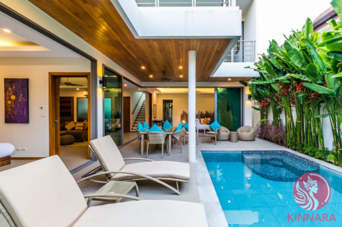Own this Exceptional 4-Bed Villa in Rawai - Ready for High ROI and Tropical Living!Situated in the sought-after area of Rawai, this stunning two-story villa boasts four bedrooms, each with its own ensuite bathroom. The ground floor features two bedrooms, including a spacious master bedroom with a luxurious bathtub and shower. The upper level houses the remaining two bedrooms. The lower floor offers a seamless open living plan, comprising a comfortable living room, elegant dining area, and a fully equipped western kitchen. The kitchen is equipped with modern appliances such as a stovetop, oven, microwave, refrigerator, as well as cookware and dishes. Step outside to the tropical terrace and private swimming pool from any room on the ground floor for a true indoor-outdoor living experience. Enjoy the convenience of estate facilities like a well-equipped gym, reception office, CCTV surveillance, and round-the-clock security guards providing peace of mind for residents. This villa is offered fully furnished and set up for rentals, making it an excellent investment opportunity with high occupancy rates year-round. Take advantage of existing rental bookings and the option to continue working with the current management team for a hassle-free experience. Rest assured of the propertys safe and secure ownership structure with renewable leaseholds that require ground rent payments to the land-owning company for lease extensions. Please note that freehold conversion is not available for Thai nationals or companies. Additionally, benefit from low transfer fees and no capital gains tax for future resales. Dont miss your chance to own this exceptional villa in Rawai - an ideal choice for both investment and lifestyle purposes!