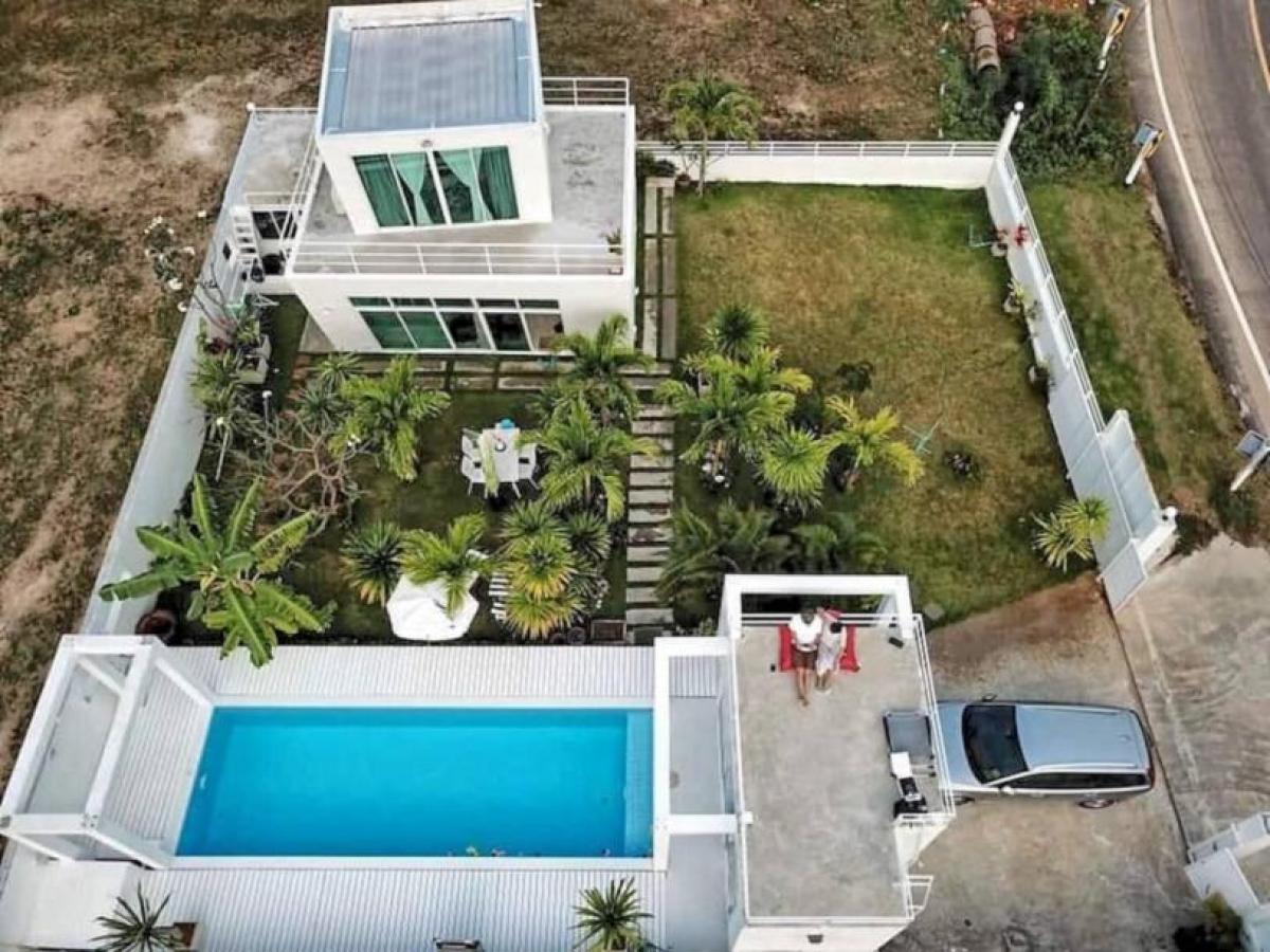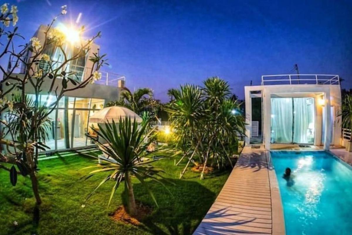 Situated very near to long stretches of sandy beaches and stunning mountains. -Near Hua Hin & Pranburi. 3 hrs from Bangkok. -In the most beautiful low-key area with dramatic seascapes, islands, mountains, beaches, colorful boats, amazing tropical nature, and few tourists -Friendly fishing villages, many markets with an abundance of fresh & cooked Thai foods. -Pranburi is famous for a wide variety of fresh, delicious seafood. -'Art Nature Life' is a 2 bedroom, 2 bathroom villa with private pool suitable for swimming laps. -Features two buildings - the main building with a large living and dining room, and separate fully-equipped kitchen with a two-burner cooktop. The master bedroom is on the upper level, and there is a second bedroom at the far end of the swimming pool. -All air-conditioned except for the kitchen and bathrooms. -Main bedroom with king size bed and beautiful views. -Outdoor poolside shower. Transfer fees 50/50. Ownership: Thai-