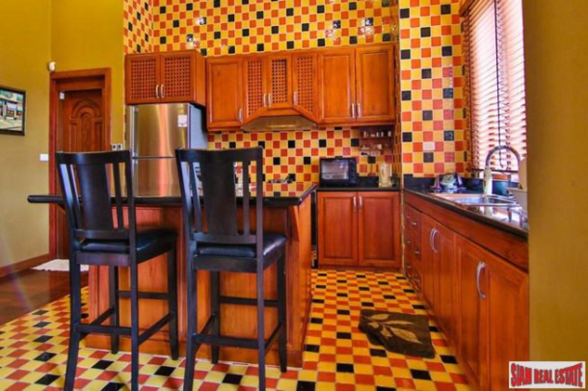 This attractive villa is very private and built using high-quality top-grade materials including lots of solid hardwood finishing and parquet floors. Inspired by the sought-after View Talay Marina Villas in Jomtien, the owner of this home nested his property at the borders of the Phoenix Gold Golf Resort and Country Club. A beautiful rural area with stunning views, yet just minutes away from buzzing Pattaya city and the pristine beaches of Baan Amphur, an idyllic fishers village on the Gulf of Siam.This home comprises of a large open-plan living space with a fully equipped European-style kitchen, dining room, spacious garage and an extended kitchen area with a full semi-professional preparation kitchen and a stone-oven for pizzas.