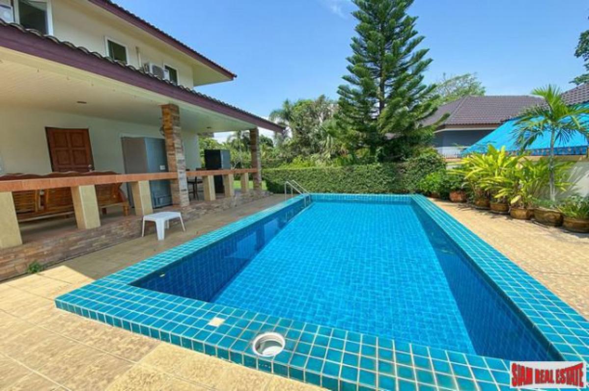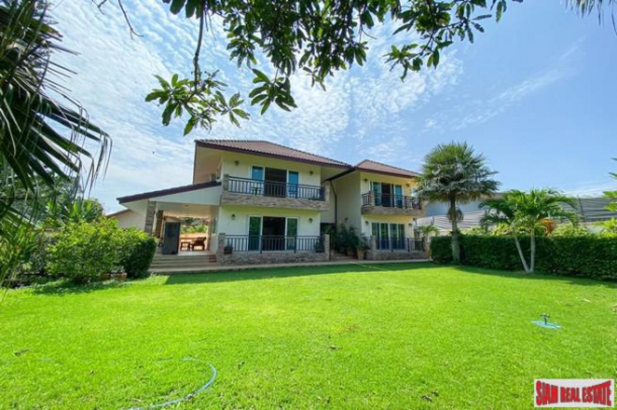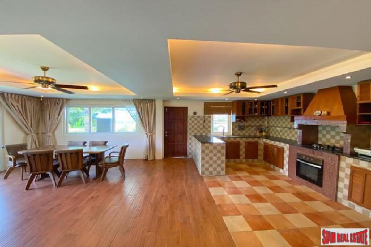 Large and stylish four bedroom and two storey villa for sale in Pattaya. The villa is situated in the Ban Ampur area. This is a picturesque location close to shops and restaurants.The house has five rooms with a total area of 250 sqm and the land plot has a total area of 756 sq.