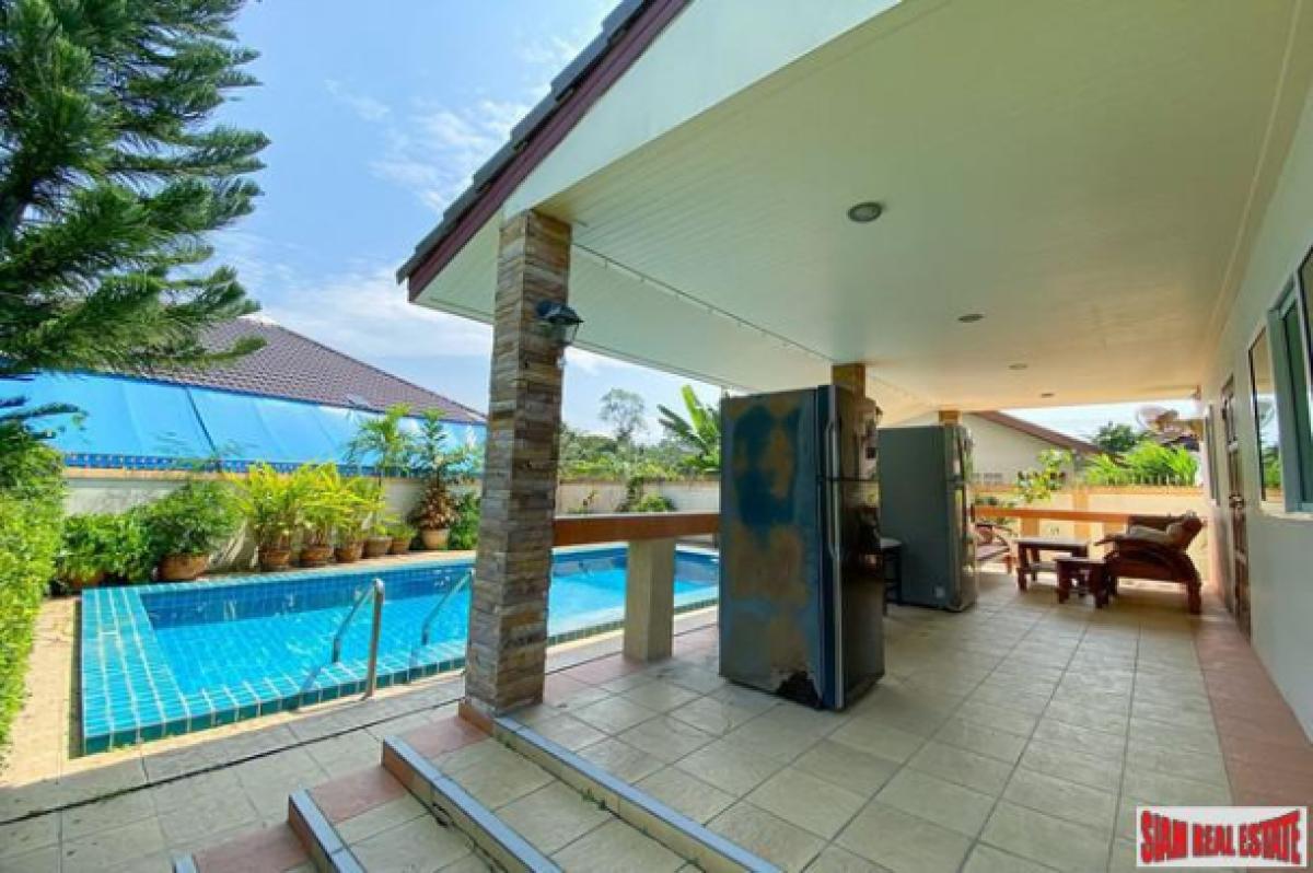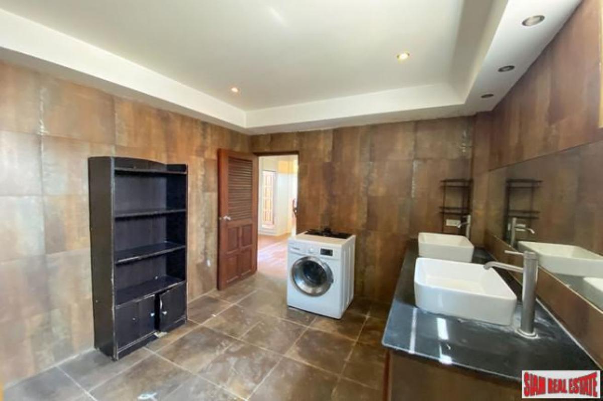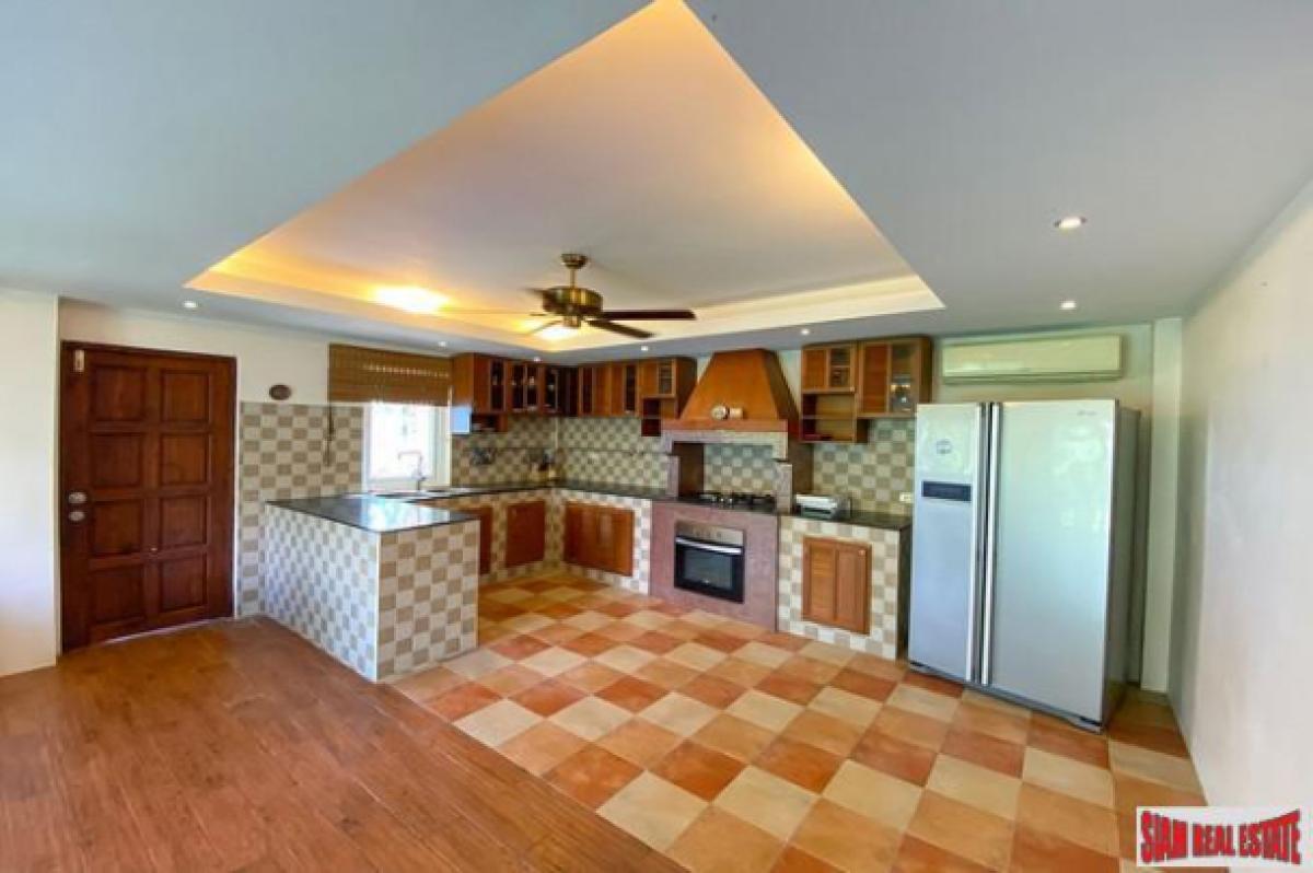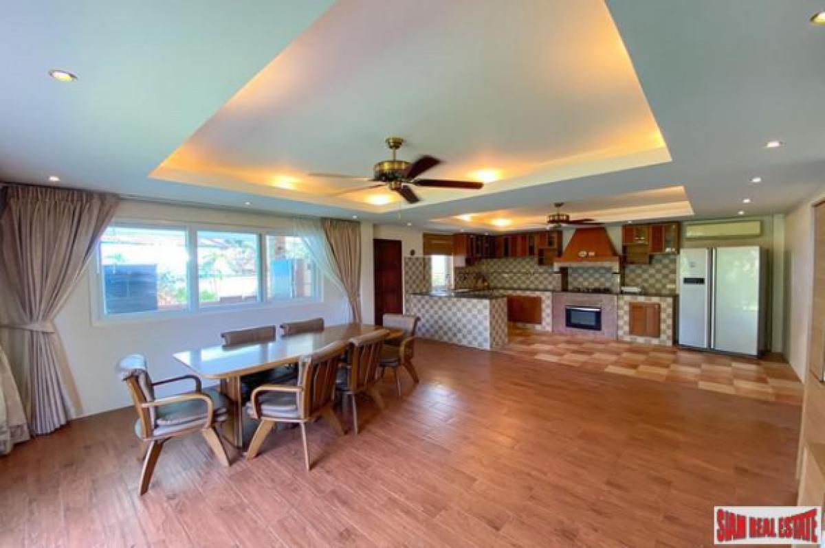 Large and stylish four bedroom and two storey villa for sale in Pattaya. The villa is situated in the Ban Ampur area. This is a picturesque location close to shops and restaurants.The house has five rooms with a total area of 250 sqm and the land plot has a total area of 756 sq.