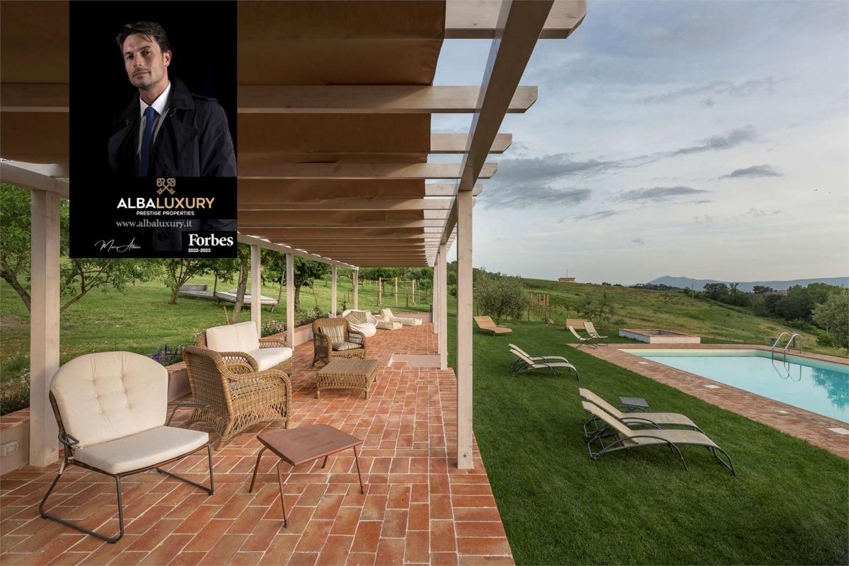 Splendid Property - Petrignano sul Lago, Umbria, Italy^A unique property, surrounded by the natural beauty of Umbria, located in Petrignano sul Lago. This 12-hectare property is a true gem, encompassing an ancient 15th-century Olivetan monastery and a host of exclusive amenities that make it an oasis of luxury and comfort.^Key Features:^Pools for Relaxation: The property boasts two swimming pools - a 7x14-metre outdoor pool surrounded by a charming patio ideal for cool, relaxing moments, and a heated indoor pool available to SPA guests.^Vineyard and Olive grove: With 1.7 hectares of vineyard and 3 hectares of olive grove containing some 400 trees, this property is a real gem for lovers of good food, oil and wine. Here we produce 600 litres of oil and 7000 bottles of high quality Sangiovese every year.^Panoramic View: Dominantly positioned a few minutes from Lake Trasimeno, the property offers a breathtaking view of the surrounding Tuscan hills and the famous Montepulciano.^Food and Wine Tourism: The area is renowned for food and wine tourism, with a high quality culinary tradition. The property fits perfectly into this context, offering first-class local products.Technological comfort: The property is equipped with state-of-the-art technological solutions.Strategic Location: Only 20 minutes from Montepulciano and 25 from Cortona, this property is the ideal starting point for exploring the surrounding Tuscany and the picturesque Lake Trasimeno area.^Detailed Description:^The spacious 1500 sqm property is currently used as a farmhouse and offers enchanting spaces split over various levels. The ground floor is characterised by large halls with arches in succession and a bright veranda that connects to the outside garden. A monastery chapel converted into a hobby room and a stone staircase lead to the first floor, dedicated to bedrooms and a central hall with fireplace.^In addition, an annex dedicated entirely to a private spa is a place of retreat and regeneration. Here you will find relaxation areas with suspended beds and waterbeds, a Turkish bath, sauna, heated swimming pool and 4 cabins for massages and wellness treatments.^Outside, you can enjoy a magnificent 7x14-metre pool with a spectacular view of the Umbrian-Tuscan hills. At night, the warm lights make this property even more fascinating, while the starry sky offers a unique spectacle.^For wine lovers, the 1.7-hectare vineyard produces the fine 'AMICIZIA', a red wine made from Sangiovese (85%) and Merlot (15%) grapes. In addition, the olive grove produces a high-quality extra virgin olive oil called 'VIVO'. ^This property is a luxury escape immersed in the beauty of Umbria, offering exclusive services, breathtaking views and an authentic experience. ^Location:^Montepulciano: 18 km^Montalcino: 54 km^Cortona: 18 km^Passignano sul Trasimeno: 21 km^Siena: 74 km^Florence: 116 km^Perugia: 50 km^Rome: 177 km^,