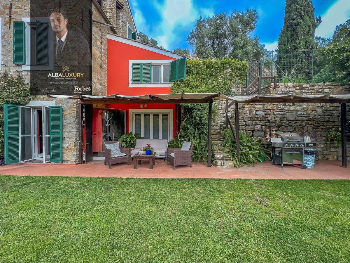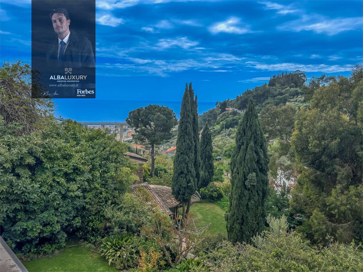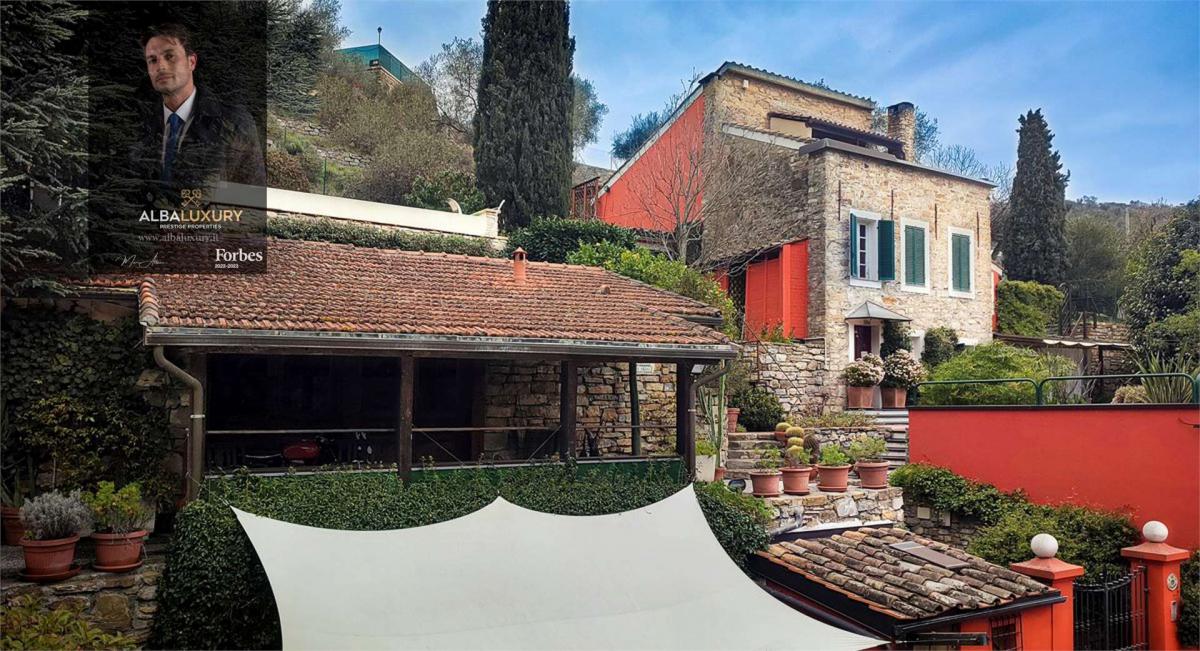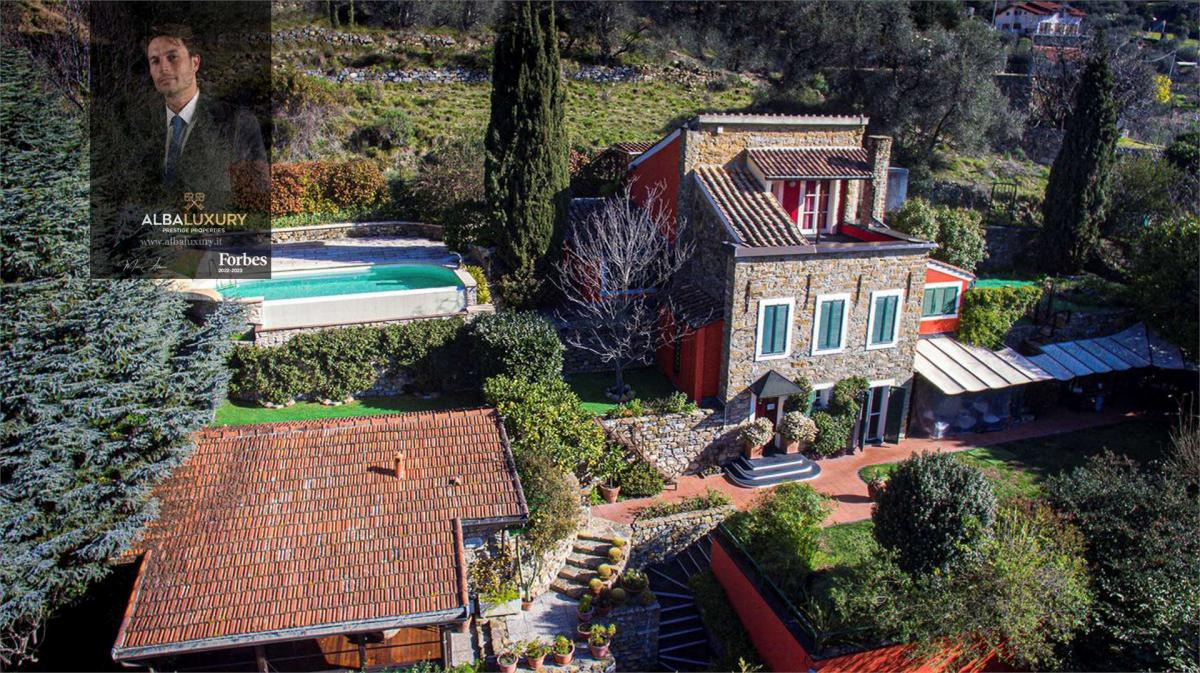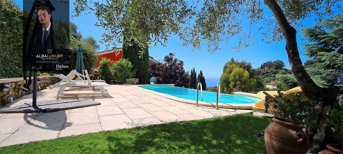 Prestige Property with Panoramic View of Sanremo^Situated in the charming Ligurian hills near Sanremo, this residential complex embodies the pinnacle of luxury and country beauty. The estate consists of three main residences, set in a protected and secure environment, accessible via an exclusive road, with ample parking space and a spacious garage that can accommodate 6 to 8 vehicles.^Main Building - Traditional Ligurian Villa:^The main villa, a typical Ligurian residence of 210 sqm, offers breathtaking panoramic sea views. Thanks to meticulous renovation, very high quality finishes have been provided while keeping the local tradition alive and integrating modern touches. The villa is surrounded by a 500 square metre garden with a variety of lush and vibrant plants, and offers a cosy living area, a dining room and a barbecue area under a charming wooden veranda. The property unfolds on different levels among the olive trees, culminating in a custom-made infinity pool with a fully equipped sun terrace, a shower area, a changing room and comfortable sun loungers offering breathtaking sea views. Interior of the Main Villa:^The ground floor houses a cosy living room with a fireplace, sofas and armchairs, a fully equipped kitchen with an attached pantry, and a spacious dining room with floor-to-ceiling windows overlooking the garden. The second level houses a private study, a master bedroom with en-suite bathroom and a large walk-in wardrobe, and a second double bedroom with en-suite bathroom and large walk-in wardrobes, connected to an additional single bedroom that can be converted into a master suite. The third level offers a cosy and relaxing atmosphere, with a library\/living room furnished with sofas and armchairs, which opens onto a large panoramic terrace overlooking the valley. Completing this level are a laundry room and a veranda for drying.^Additional Tavern and Residence:^In addition to the main villa, there is a tavern suitable for guests, with a 60 sqm dining room and a large wooden porch. This space offers a living area with a charming fireplace, a dining room for 12 to 16 persons, a pantry and a bathroom. ^The property also includes a newly built villa of 112 sqm, adjacent to the main building and surrounded by a spacious sun terrace and a flower garden of over 100 sqm. This residence is on one level and consists of three bedrooms, two bathrooms and a large open space with a living room featuring floor-to-ceiling windows, a kitchen and a dining room overlooking the garden.,