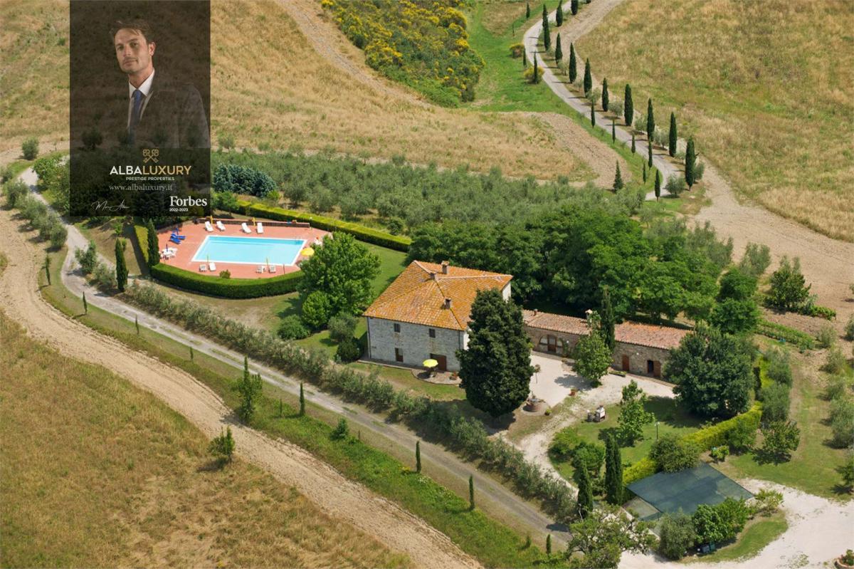 Splendid farmhouse located just 45 minutes from the renowned medieval city of Siena, an oasis of relaxation immersed in the magnificent panorama of the Val d'Orcia and bordering on the suggestive Crete Senesi.^MAIN FEATURES: Privileged Location: Positioned in a strategic area for nature and history lovers, it offers the possibility to explore the surrounding beauty and visit historic villages such as Montalcino, Pienza, San Quirico d'Orcia and Montepulciano.^Historical Structure: An old farmhouse dating back to the 17th century that has been completely restored, a true architectural jewel built entirely of travertine blocks.^Extension Land: Approximately 30 hectares of land, 2 of which are dedicated to vineyards, 1.5 to olive groves and 0.5 to the cultivation of truffles, offering an authentic experience linked to the land.^Accommodation: It has 4 flats and 2 rooms, for a total of 17 beds, tastefully furnished in Tuscan style and equipped with an equipped kitchenette, spacious bedrooms, bathrooms with shower and private outdoor tables in the garden.^Pool and Garden: Surrounded by greenery, the villa is enriched by an outdoor pool, ideal for moments of relaxation and refreshment during hot summer days.ADDITIONAL SERVICES:^Winery and Tastings: Next to the farmhouse is the owners' wine cellar, where high-quality wines, extra virgin olive oil and honey are produced. The wine cellar also offers a tasting room and a large terrace for convivial and unforgettable moments.^Agricultural Shed: There is an agricultural shed of 250 square metres, which represents an added value for those wishing to undertake activities related to agriculture.^This extraordinary property represents a rare opportunity for those seeking a combination of tradition, comfort and scenic beauty in one of the most fascinating places in Tuscany.,