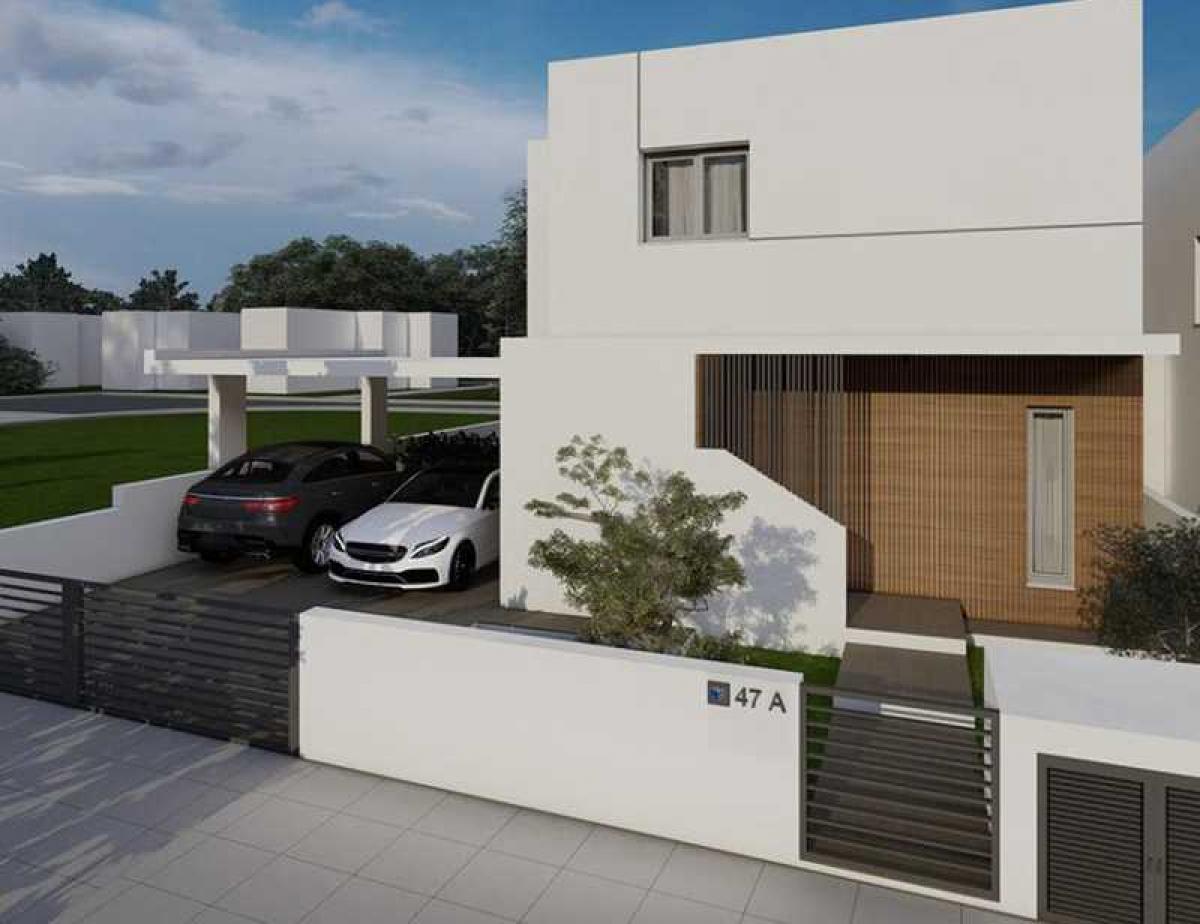 House for sale with three bedrooms, spacious living room, modern kitchen and three bathrooms in Nicosia, Strovolos. The house fully complies with EU earthquake protection standards, which guarantees a high level of safety. Advanced European materials were used in the construction: the floors are made of high-quality tiles, and laminate flooring is laid in the bedrooms. The staircase to the second floor is lined with marble or granite. Windows with thermal insulation and a solar panel system are installed. Alarm systems and an intercom system are provided for security. The covered parking is designed for two cars. The convenient location next to the city infrastructure makes this house an ideal option for a family, combining comfort, security and a modern lifestyle.Reference number: 117117
