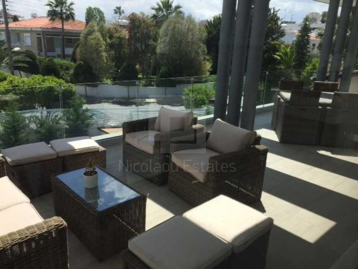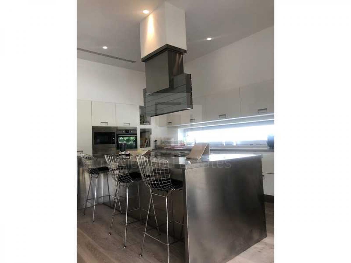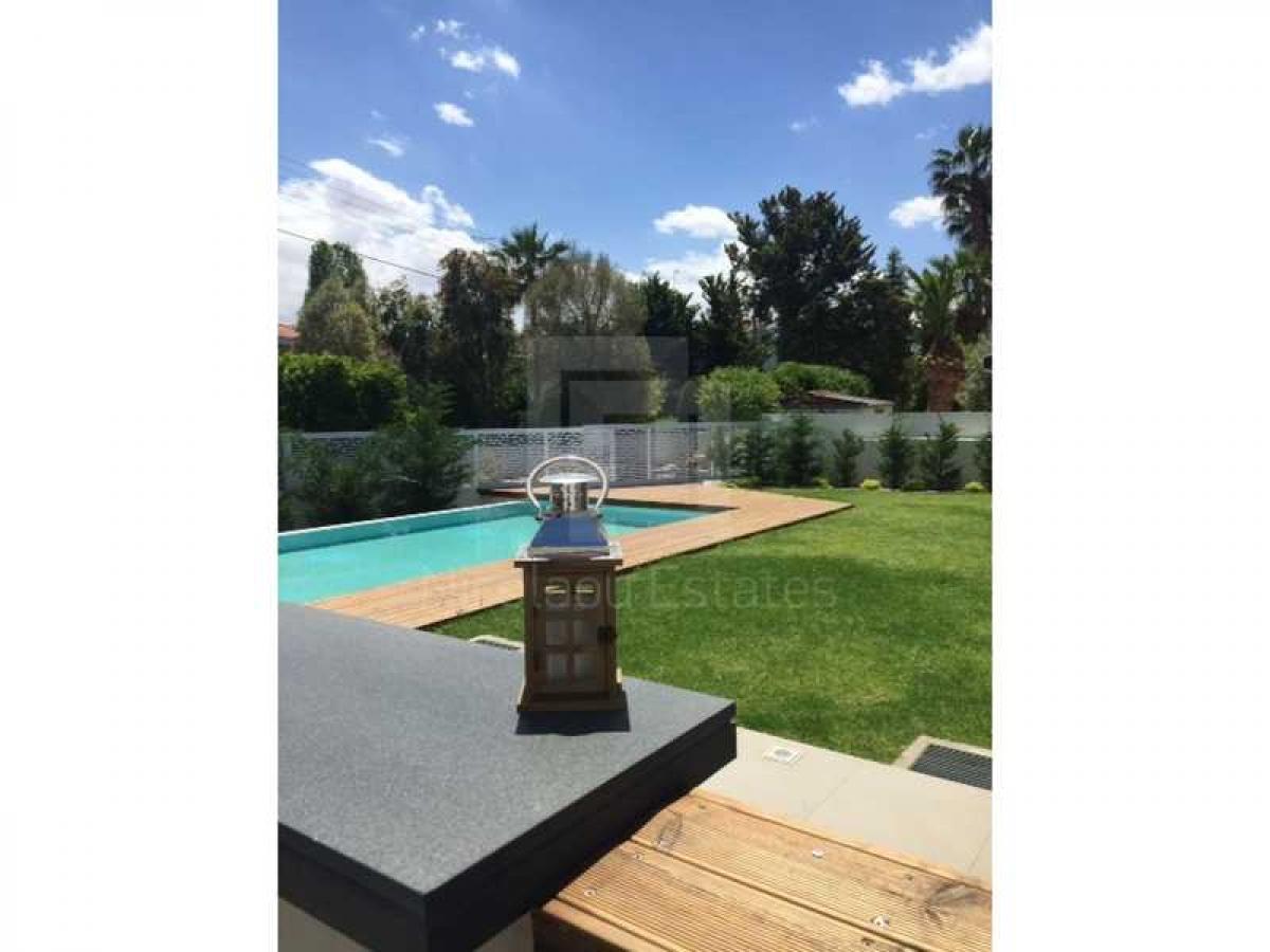 The house is situated in one of the most luxurious areas of Nicosia, at Eleonon area. It is very close to the town centre, with easy proximity to Limassol and Troodos highways, schools and all amenities. The property is build over three floors with 1000 sq.m covered area and 840 sq.m plot, it has a unique modern design and it's built with the most expensive materials.Among other elements, the house features modern solid wooden floors, under-floor heating supported with solar energy, VRV air-conditioning, security alarm and camera system, home automation system for ground floor lighting, structure cabling in all the rooms, over flow 10mx5m swimming pool, sauna room (optional), steam shower, gym, TV room, maid's room, office, exclusive hi-tech design Arc Linea kitchen, top quality sliding Italian wardrobes and two gas fire places. There is also an KENO elevator.