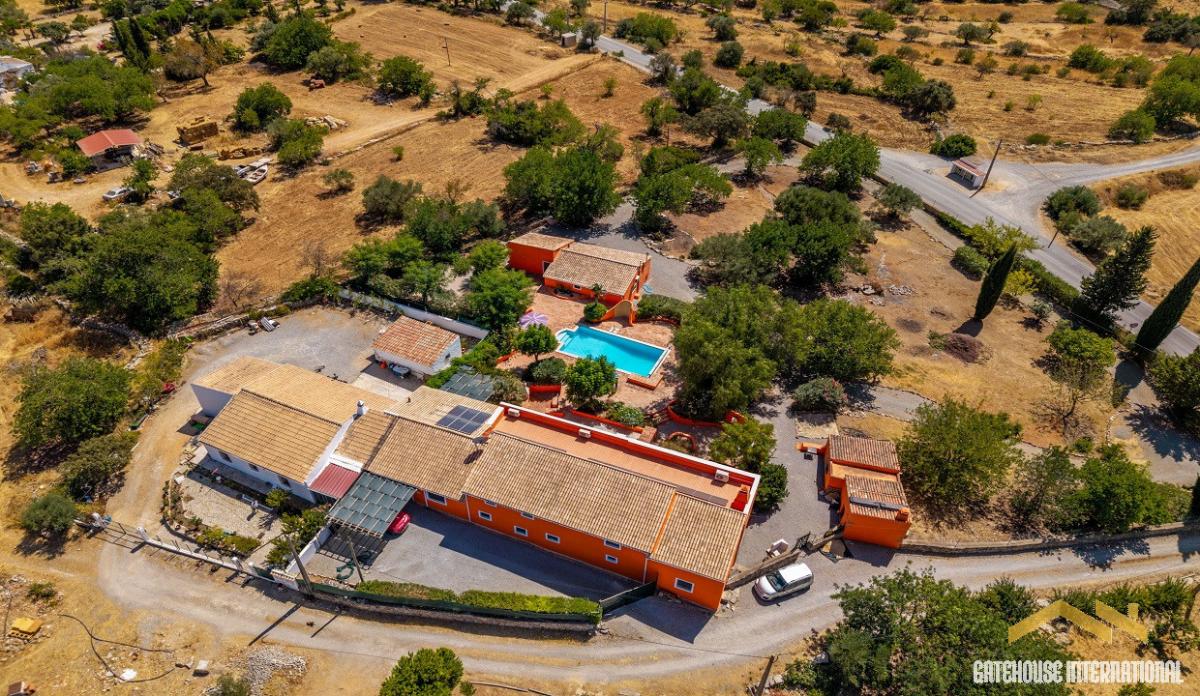 5 Bed Villa Plus 2 Bed Guest Cottage in Sao Bras Algarve - a traditional rustic Portuguese 441m2 property estate with a plot of 4,557m2 with its own borehole with the house with 5 bedrooms plus a separate detached 2 bedroom guest cottage, plus a 9.5m x 4.5m2 heated swimming pool. The farmhouse has charming rustic architecture with modern living, with 5 large bedrooms with 4 bathrooms plus a separate detached 2-bedroom cottage set on either side of a large patio/swimming pool within wonderful mature gardens. The property is located in the countryside, 10 minutes from Sao Bras de Alportel and the local coastline of Fuseta, Olhao and Tavira with their sland beaches. The terrace area is perfect for peaceful relaxation around the pool, with both patio and pool lighting. The property maintains its rustic charm whilst also benefiting from underfloor heating with heat pump, full photovoltaic solar system with batteries, a solar / heat pump hot water system and a heated swimming pool by heat pump. This is also offers a rental return, B&B potential, or wonderful family home with plenty of space for visiting family.Features