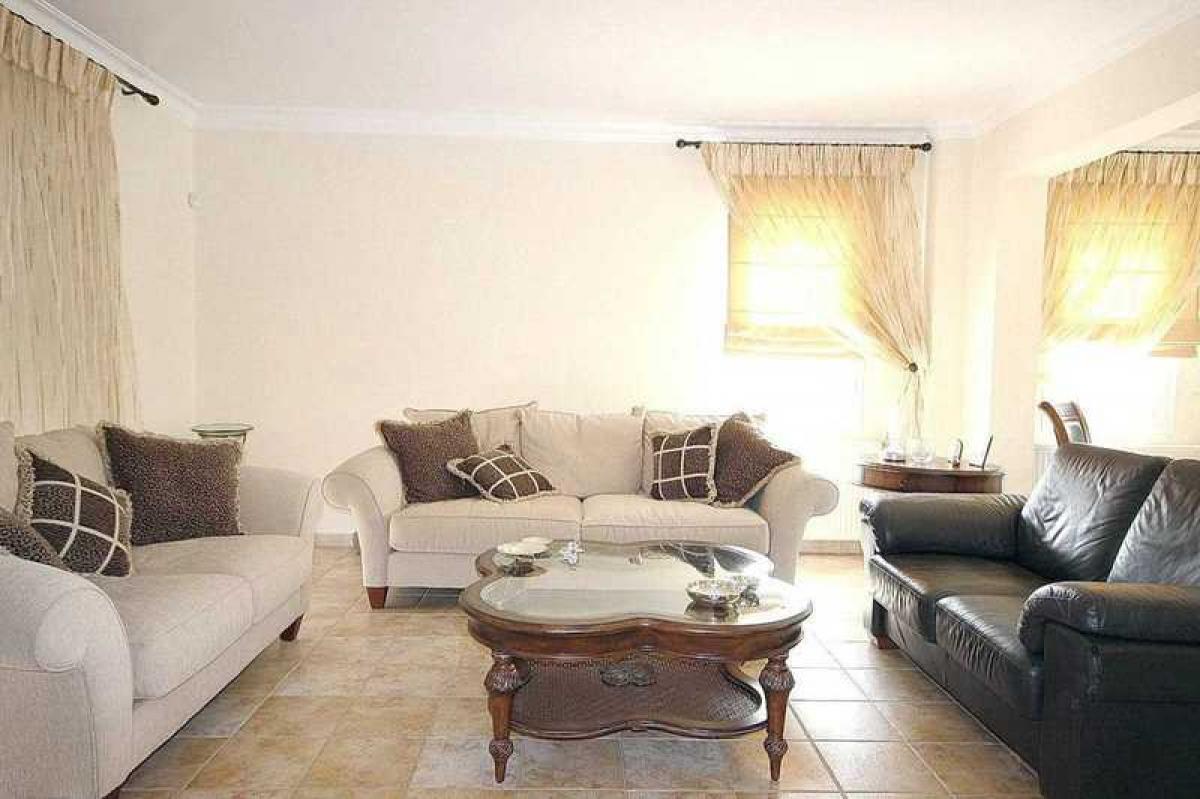 The generous internal living area of over 300 sq.m. accommodates 2 huge living rooms, a separate kitchen with a kitchen island with extractor hood and cooker and three spacious bedrooms. The master bedroom features a walk-in wardrobe and an ensuite bathroom. Furnished in traditional style, the living areas of the villa will make you feel easy and at home.