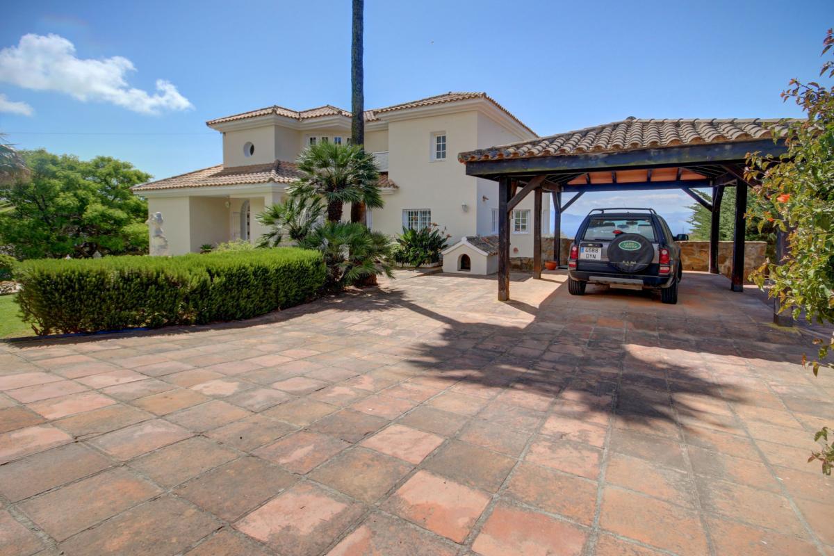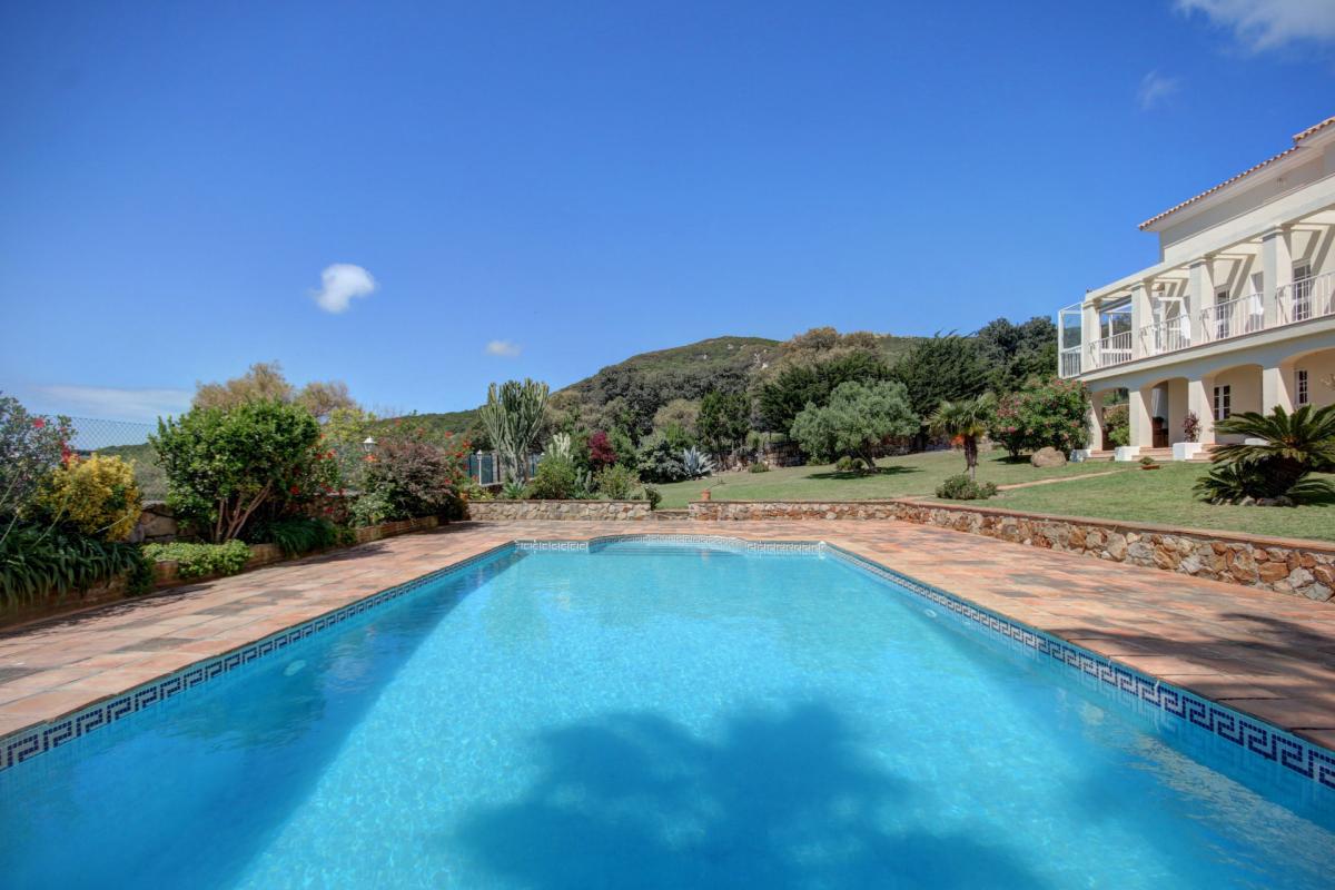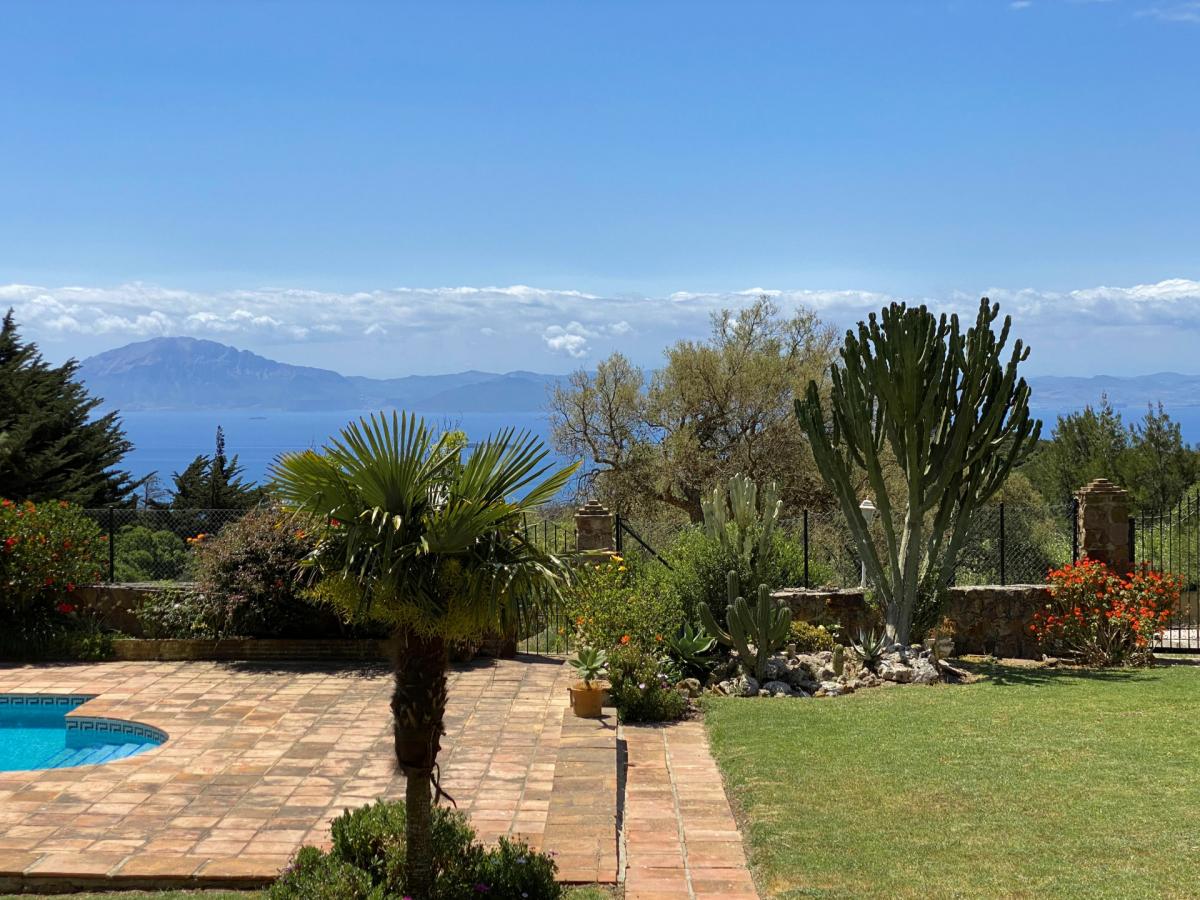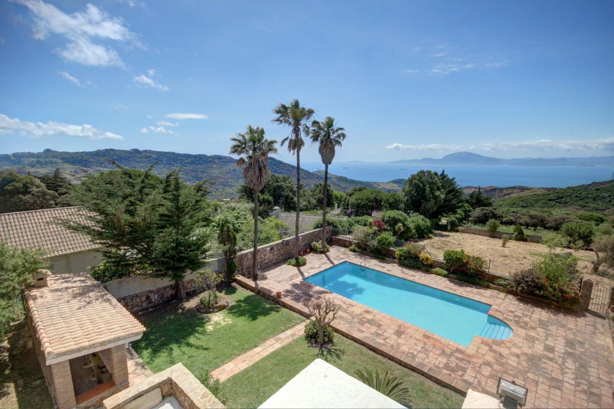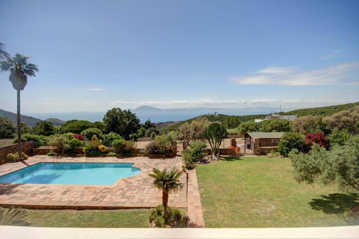 This impressive villa boasts what could be the most awe-inspiring views of northern Africa and the Straights of Gibraltar from its elevated vantage point in El Cuarton. The home sits on an exceptionally spacious double-sized plot measuring almost 4000m2 located near nature, and just 10 minutes by car to Tarifa. in addition, the secondary plot can be separated from the main plot and currently a fence separates both sides of the property.From street level there are two entrances to the villa, one for cars arriving directly at a covered carport with room for 2 cars, while the other entrance is for pedestrians leading straight to the front door. The villa is entered on its middle floor, where an entry hall leads to all the living quarters inside. Straight ahead from the entrance, through the double doors, is the living room that features a wood burning fireplace and large floor-to-ceiling windows that immediately showcase the incredible views of northern Morocco and the mountains in the surrounding areas. To the right is the fully fitted kitchen with ample countertops and storage space. it has an adjacent dining area that opens to the terrace on this level, spanning almost the entire width of the home and offering enough room for an outdoor dining area. Completing this level of the villa is a bedroom with en-suite bathroom. Upstairs there are 3 more bedrooms, two of them accessing the main terrace, while the third guest room has its own private balcony with east-facing mountain and sea views, and they share access to a guest bathroom on this floor. Downstairs in the lower level there are two additional bedrooms and another lounge area that opens to the garden. Surrounding this lovely home is its perfectly manicured garden. The beautiful outdoor space offers ample lawns dotted with mature trees, all focusing on the delightful pool area. There is a covered BBQ area with sitting counters, ideal for family gatherings and making the most of the mild weather throughout the year. With several covered and open spaces to relax, sunbathe and generally enjoy the outdoors, the garden of this property is designed to be enjoyed all year round and is laid out around the stunning scenery of its privileged location.