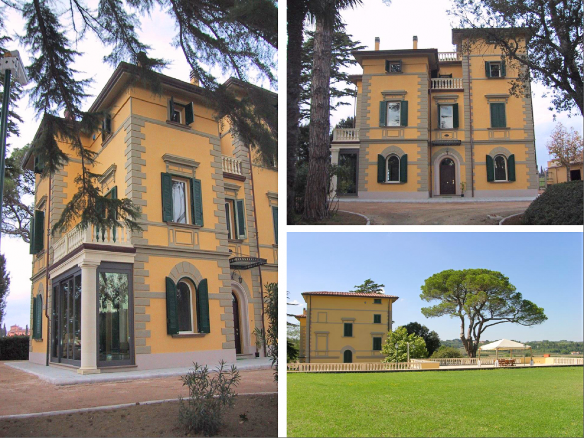 In a panoramic position, in the rolling hills of the beautiful Valdera countryside, this prestigious villa dating back to the 1800's, sits on the medieval trade route between Pisa, Volterra and Siena. Carefully renovated to the highest standards in 2004, the property includes 5 hectares of land planted with producing vineyards, olive groves, a park of tall trees and a wonderful swimming pool.The property's geographical location (40 km from Pisa airport, 70 km from Florence and 45 km from the sea) and the ability to land helicopters on site, makes it ideal for corporate use.