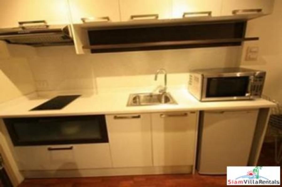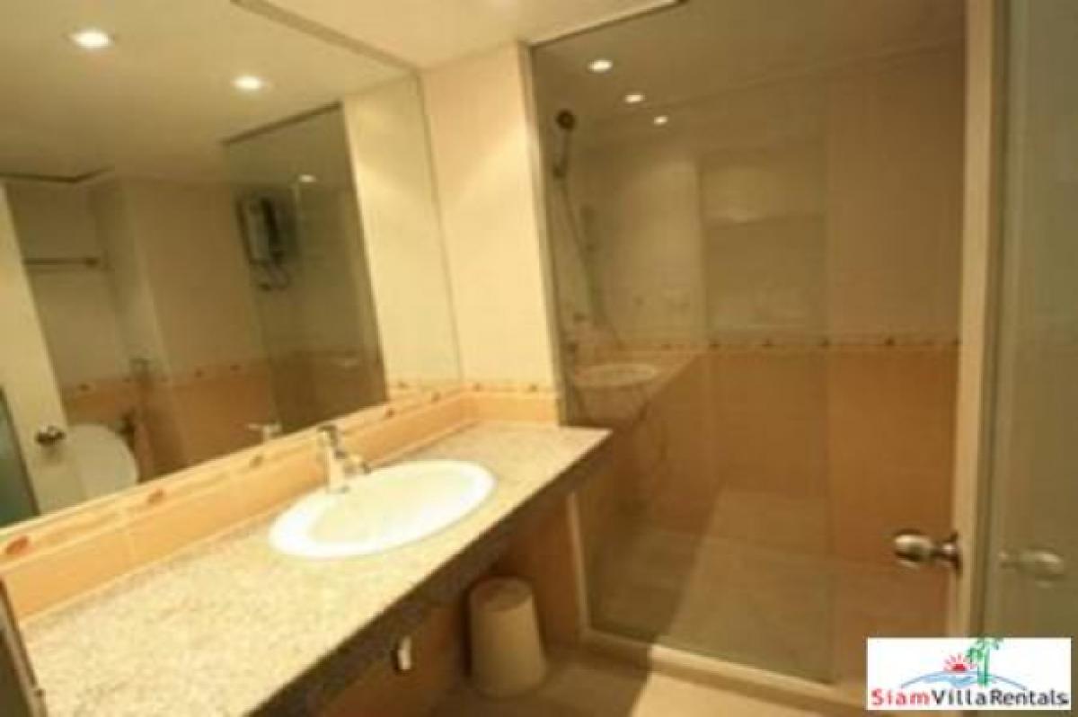 A studio apartment is for rent in the Rain Tree Condo. The apartment is 34 sqm with one bath. It is nicely furnished and has a terrace on the 2nd floor near the swimming pool. The Bathroom includes a shower screen and top quality Cotto fixtures. There is a superb southwest view from the terrace, an excellent place to unwind.The studio also includes a good sized built-in kitchen and one fixed parking space at the property. There are nice wood floors.