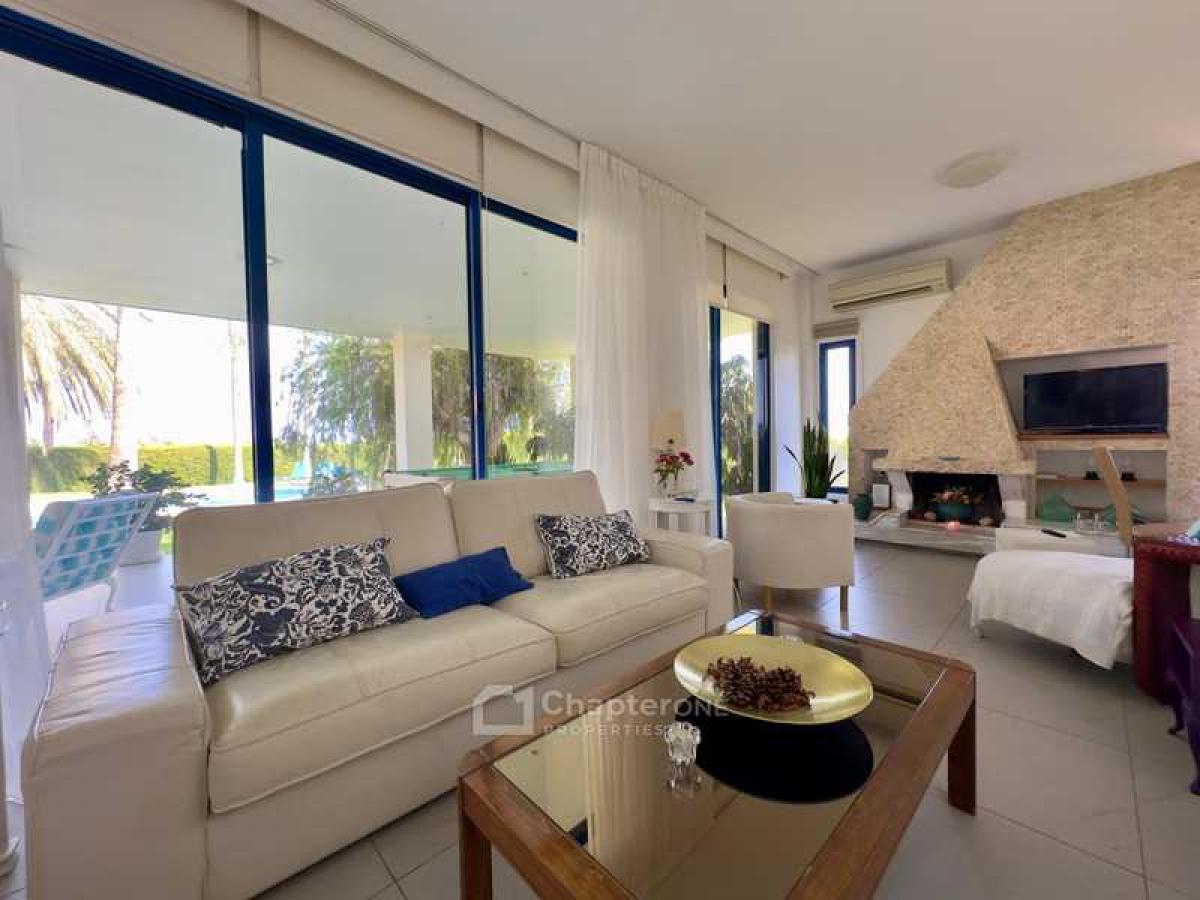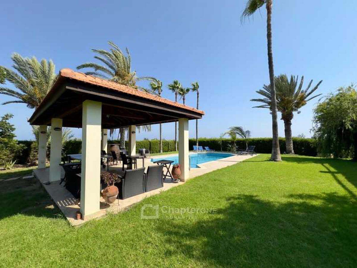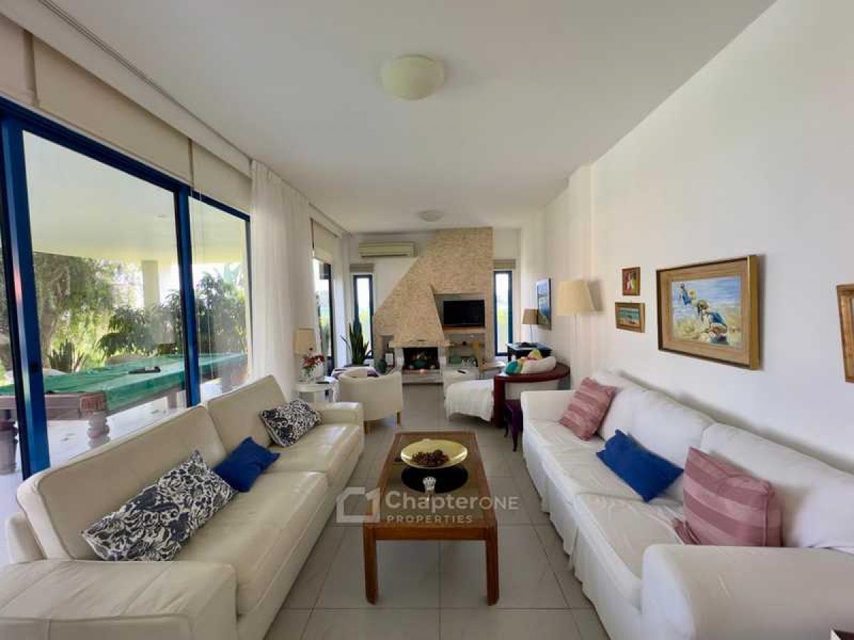 This luxurious two-story beachfront villa, renovated in 2019, features five ensuite bedrooms, an open-plan sitting and dining room with a cozy fireplace, and a modern kitchen. The ground floor includes a guest toilet and an ensuite maids/laundry room with an independent entrance. Enjoy large covered and uncovered verandas on both floors, offering breathtaking panoramic sea views.