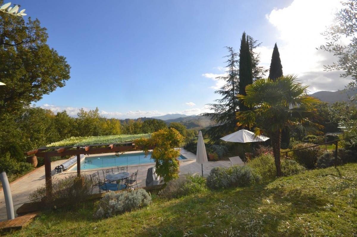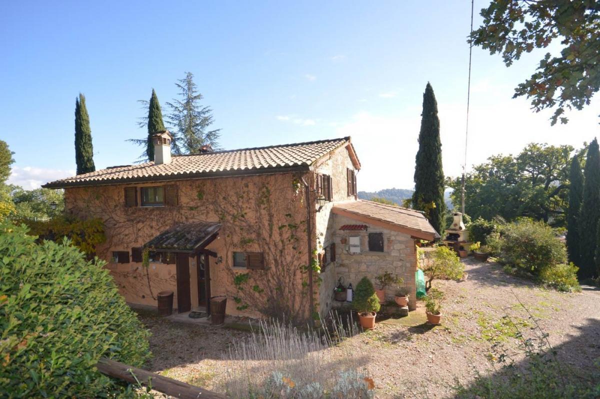 Accessed via a partly paved and partly gravel road through an automated gate, the estate opens onto approx. 1 ha of grounds with lawn, cypresses and 100 olive trees. The covered porch with barbecue is perfect for alfresco dining. A short walk up a gentle slope leads to the salt-water pool with solarium and solar shower, offering stunning views over the Umbrian countryside.
