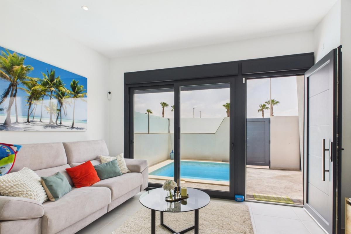 KEY READY, yet almost NEW, 3, bedroom, 2.5 bathroom Villa, situated in Torre Pacheco. The property in less than 2 years old, so still has over 8 years builders warranty.This immaculately presented Villa, benefits from hot cold air-conditioning, master bedroom on-suite, open-plan kitchen, spacious solarium (with WC) and summer kitchen area and private pool.Walking distance to ALL amenities and just fifteen minutes by car to the beautiful beaches of the Mar Menor.Excellent opportunity, must be seen to be appreciated.DisclaimerWe endeavour to maintain accurate depictions of properties in Virtual Tours, floor Plans and descriptions, however, these are intended only as a guide and purchasers must satisfy themselves by personal inspection.