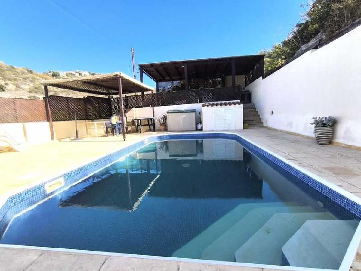 This 2 bedroom detached villa with a private pool is located in lower Tsada on a quiet cul-de-sac of only 9 villas. Tsada is approx 20 mins drive north of Paphos and close to Minthis Hills Golf Course plus the village has a Traditional Square with tavernas.There is a covered car port with a hot tub. Easy maintenance surrounding garden, private swimming pool, Gazebo for shade whilst relaxing, sun terraces and sea views.