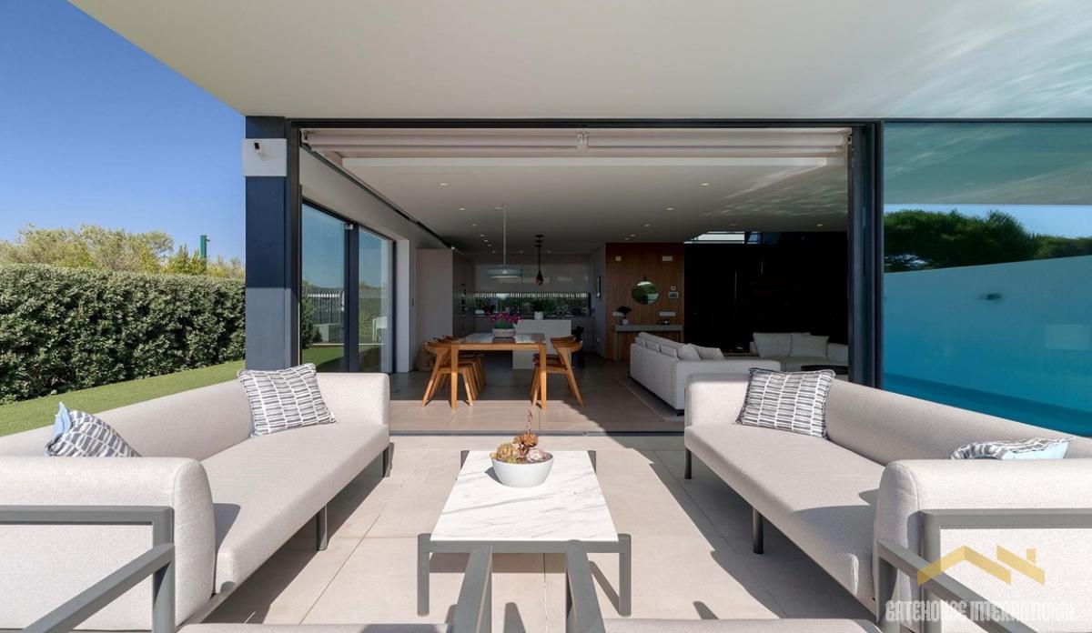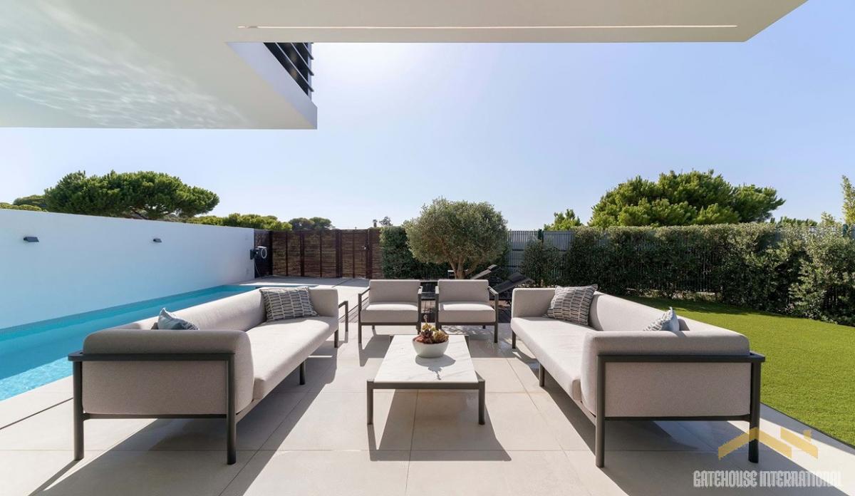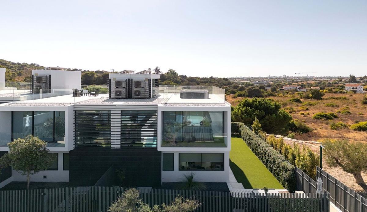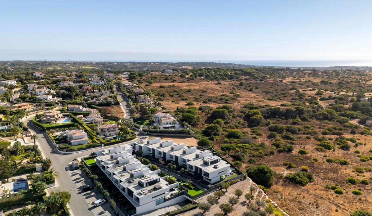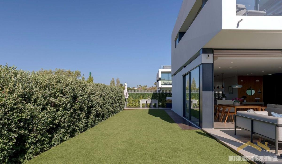A 327 m2 semi-detached villa spread over three floors, set on a 238 m2 plot. The villa features an open-plan living and dining area that flows into a fully equipped modern kitchen with a breakfast island, three en suite bedrooms, an entertainment lounge, a gym space, a home office, a laundry, a garage, a private pool, a terrace, and gardens. Layout * Open dining area and living room open directly onto a covered terrace * Fitted and equipped a modern kitchen with a breakfast island * Three bedrooms and three bathrooms * Basement with lounge, gym, office, laundry * Garage Outside * Private saltwater swimming pool * Covered and sunny terraces * BBQ and Al fresco dining space * Gardens Location Within a development near two of the Algarve's most sought-after destinations (Vale do Lobo and Quinta do Lago), and just a short driving distance from the beach in the well-known Golden Triangle area. At a glance * Three-storey * 327m2 build, 238m2 plot * Built in 2022 * Three bedrooms, three bathrooms * Entertainment lounge, gym, office, laundry * Garage * Saltwater pool, terraces * Al Fresco dining, BBQFeatures