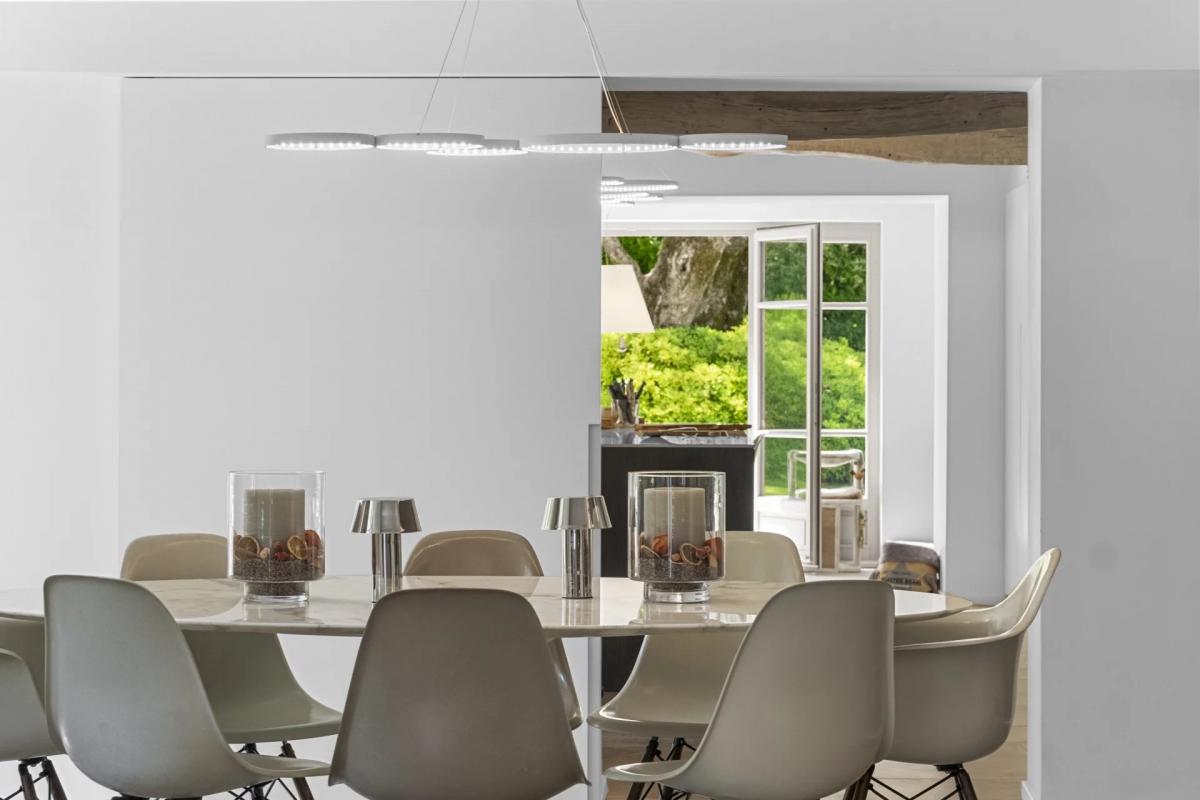 The property offers five bedrooms, including three spacious suites with dressing rooms and en-suite bathrooms. A study, a TV lounge and a wine cellar complete the interior.