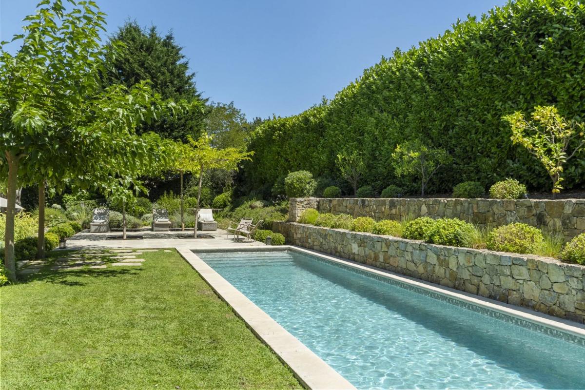 The landscaped, flat garden of approximately 2,000 m2 features several terraces, a jasmine-covered pergola, and a swimming pool that blends seamlessly with the style of the house.