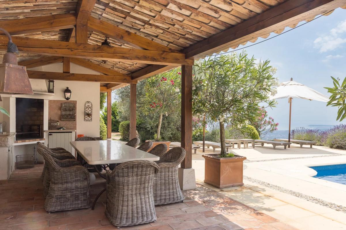 Am Ende einer Sackgasse gelegen, vollig uneinsehbar und absolut ruhig, aber dennoch nicht abgeschieden, bietet diese prachtige Villa einen atemberaubenden Blick auf das Meer und das Cap d'Antibes. in der Nahe von Saint-Paul gelegen, besticht sie durch ihre Architektur, die provenzalische Eleganz mit modernen Akzenten verbindet.