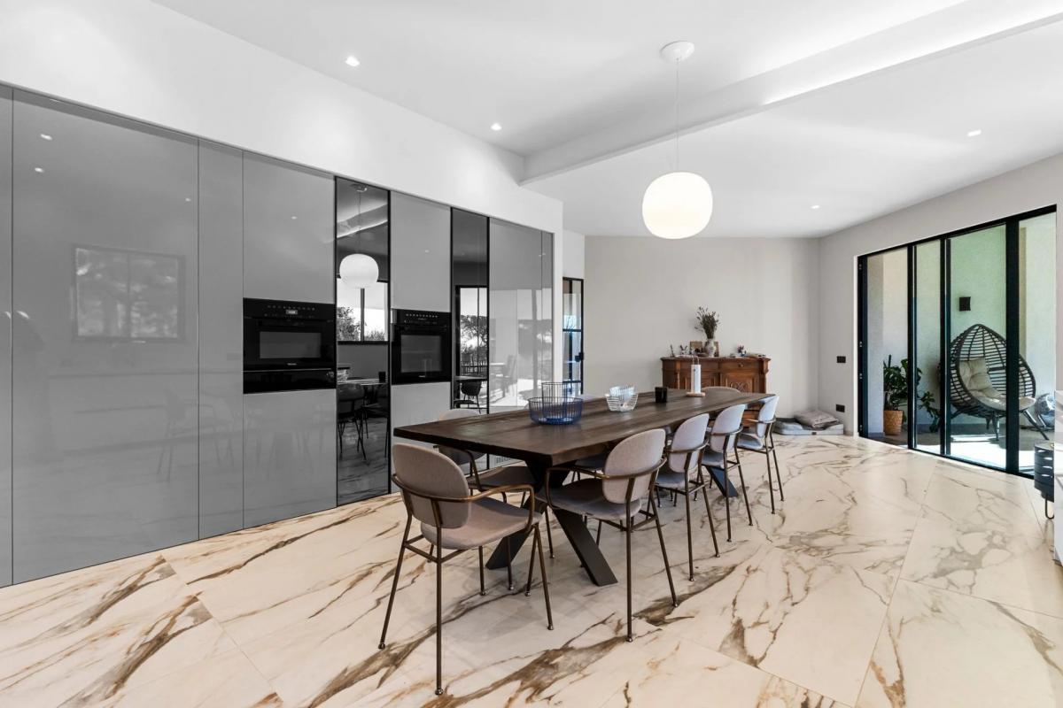 Clean lines, impressive volumes, and abundant natural light define this modern and elegant property, designed for seamless indoor-outdoor living. The expansive terraces and garden provide an ideal setting for entertaining or relaxing in complete privacy.
