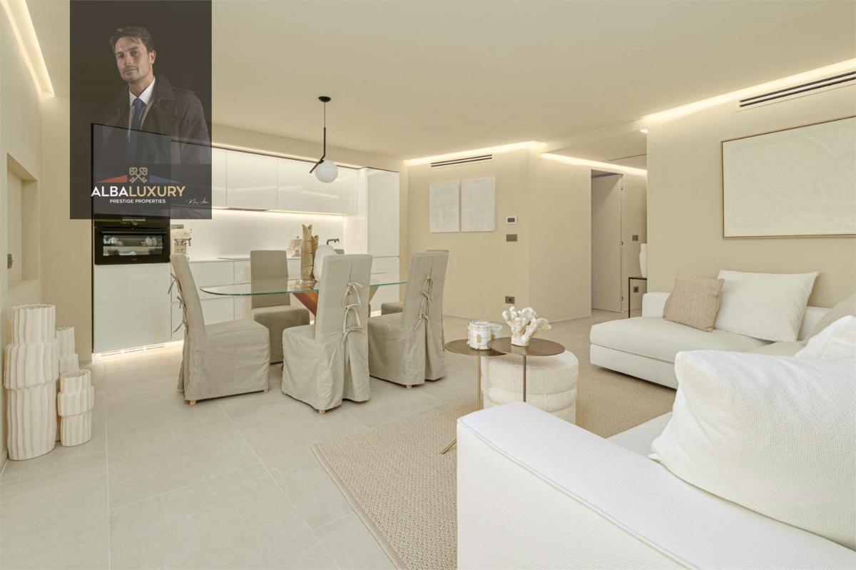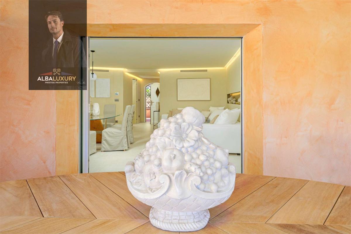 Elegantly furnished apartment overlooking La Promenade du Port and the sea, available for sale in Porto Cervo.^^This wonderful property, completely renovated at the end of September 2023, boasts a private entrance opening onto a bright living room and an open-plan kitchen. The apartment includes two double bedrooms and one with a French bed, all furnished in delicate colors, and two bathrooms with showers. The main bedroom offers a sea view and opens onto the main veranda, furnished with a sitting area and a table ideal for summer meals with a sea view.^^The apartment is equipped with air conditioning, sea view, two parking spaces, and an elevator connecting the parking directly to the residence.,
