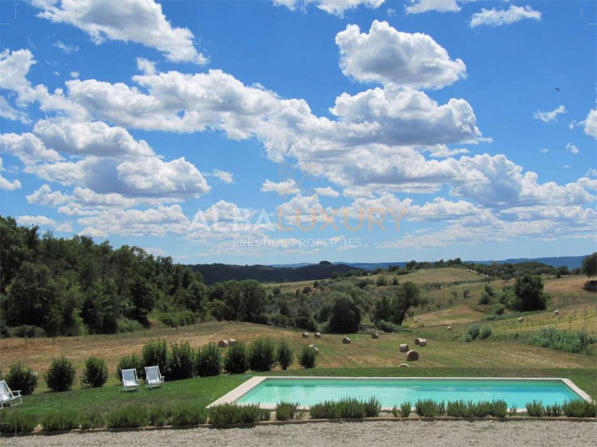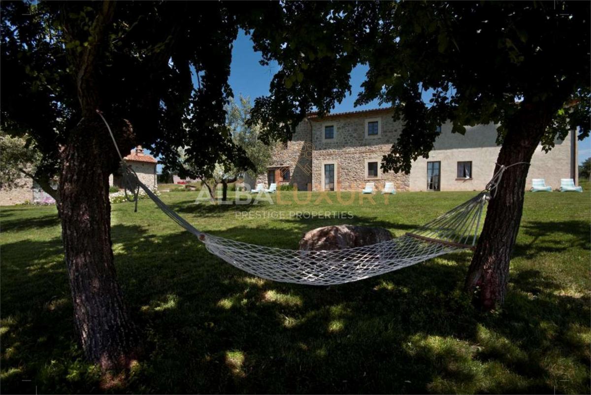 In a strategic position, easily reachable, halfway between Florence and Rome, we find this characteristic country farmhouse that consists of two old stone farmhouses that have been renovated preserving the original features with and accommodating a total of 9 rooms arranged on two floors and furnished in a simple style, each with a private bathroom.^Five rooms are on the ground floor overlooking the garden and four on the first floor overlooking the surrounding countryside^The property is easily accessible via an easy country road immersed in olive groves and is located on a 14-hectare property ^Enhancing the property is a beautiful swimming pool ideal for carving out relaxing moments.^^Montegabbione is located on a hill between Perugia and Terni. It is just a quarter of an hour's drive from Fabro, where the busy Autosole motorway passes, but it is immersed in a silent, slow context where time seems to stand still.^Montegabbione is a fortified village of great historical and architectural value. It is built around the castle and has watchtowers that once served to protect the village and to see the arrival of enemies in time. Outside the walls is the Church of the Madonna delle Grazie, which dates back to 1625. Inside the church you can see a fresco of the Madonna del Latte from the 16th century. The hills around the village, where olive trees and vineyards grow, are also enchanting and well worth a visit. In the nature near Montegabbione there are also waterfalls, streams and torrents, which you can find on your way and which make walks in the green even more exciting.Among the destinations to see in Umbria near Montegabbione, there is Fabro, a medieval village of rare beauty that you can reach by passing through hills, olive groves and vineyards. The heart of the town is the castle, which protects the surrounding buildings from above. In fact, it stands at a height of 364 metres above sea level. It is a small town, very small indeed, with reddish brick walls and narrow picturesque alleys. Worthy of mention are the Church of St Martin, which dates back to the 19th century and inside which there is a wooden bas-relief depicting St Martin, Bishop of Tours, and the 19th-century Town Hall.^,