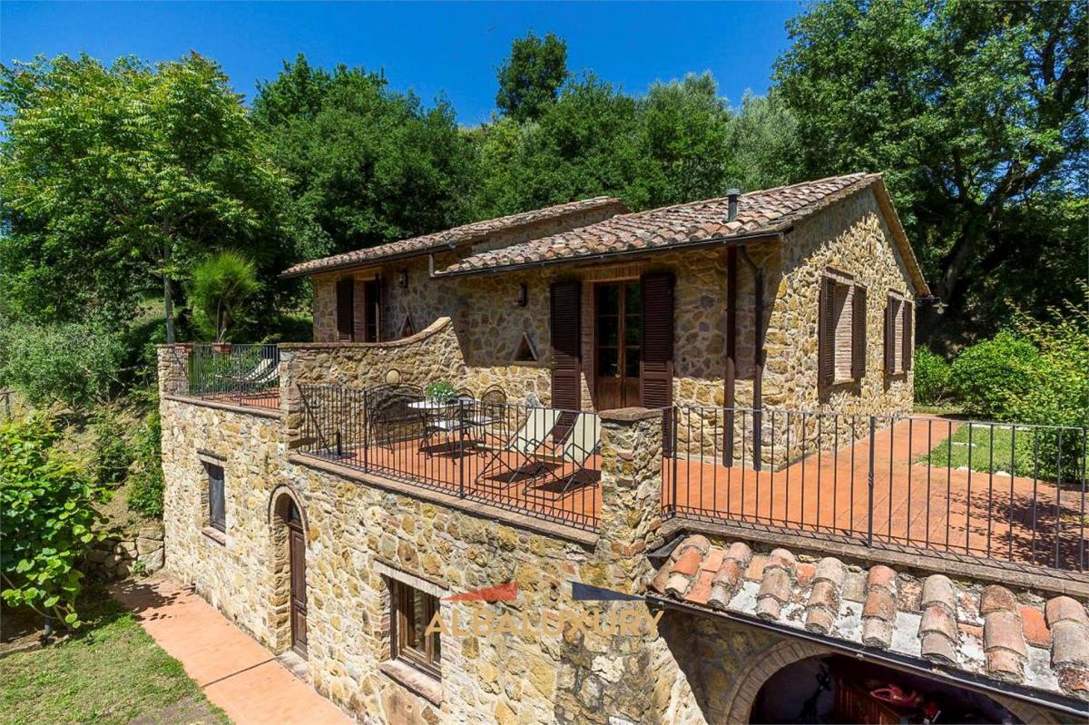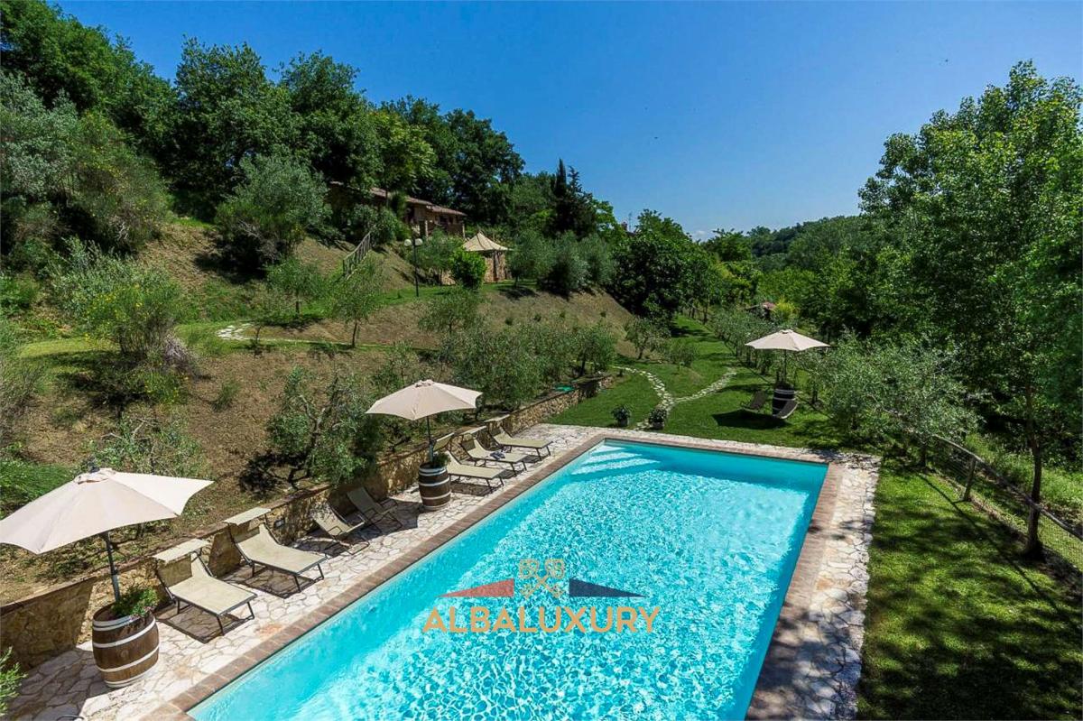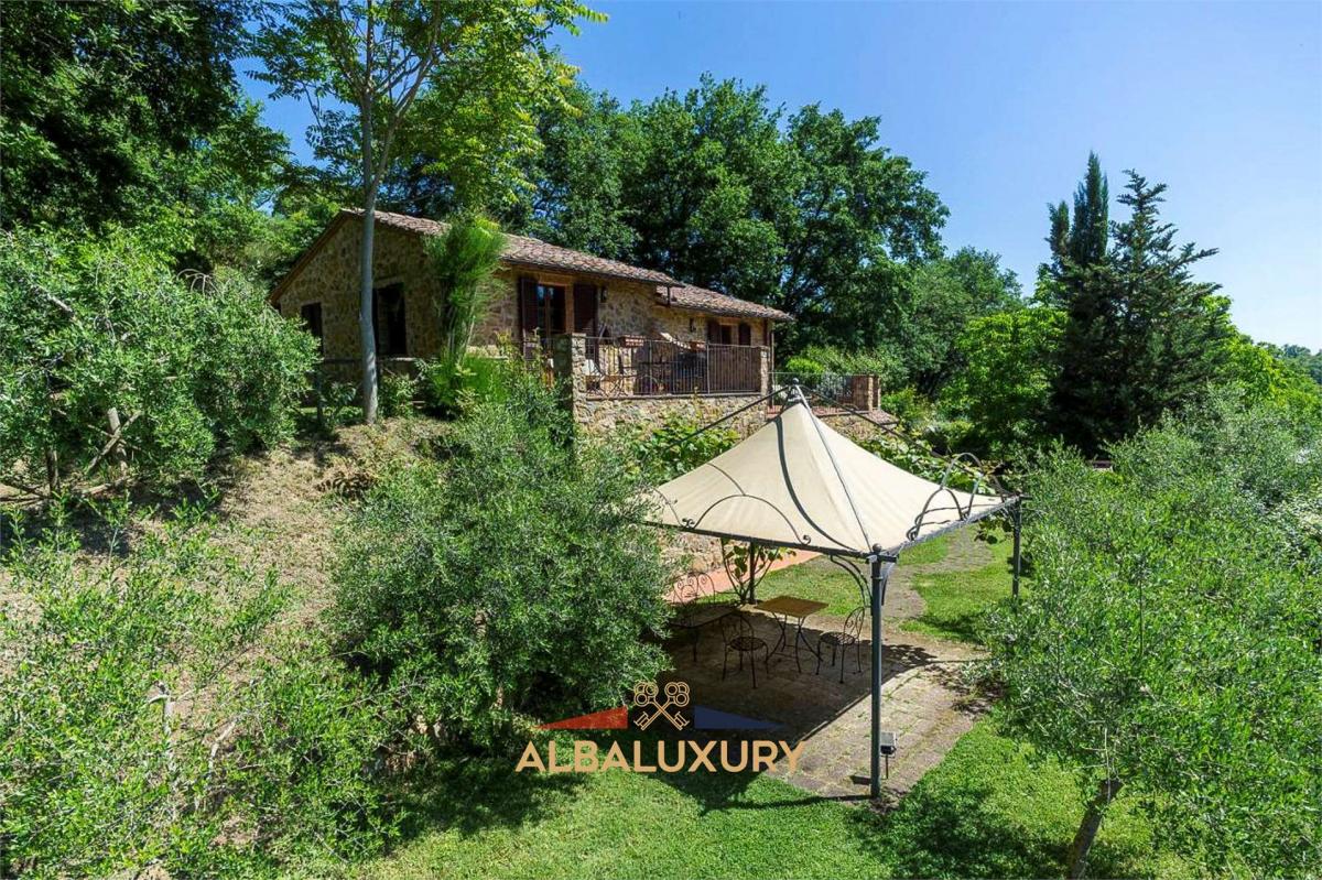 Between Val di Chiana and Val D'Orcia, we offer two recently renovated farmhouses, one of which is entirely dedicated to hospitality with flats that retain all the charm of the typical architectural structures of the period.^The careful renovation of the details has made it possible to maintain the authenticity with typical furnishings, rustic terracotta floors and wooden beamed ceilings.^The flats, each with independent entrance, have a large living room with masonry kitchen and comfortable double sofa bed, a twin bedroom and bathroom with shower.^An essential feature of each dwelling is the panoramic terrace with views of woods and vineyards from which one enters the apartments.^Each flat has its own garden equipped with garden furniture and parking space.^The property is completed with a cellar used as a restaurant room^^,