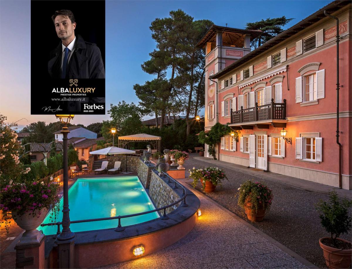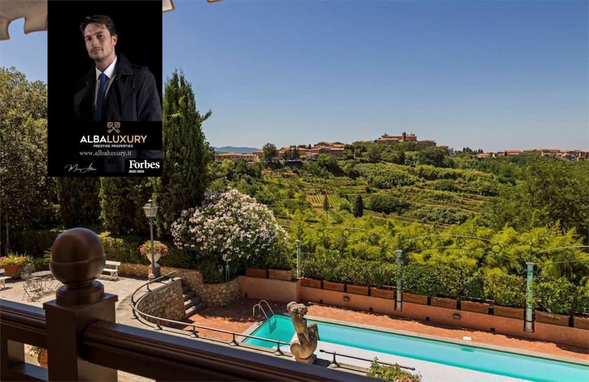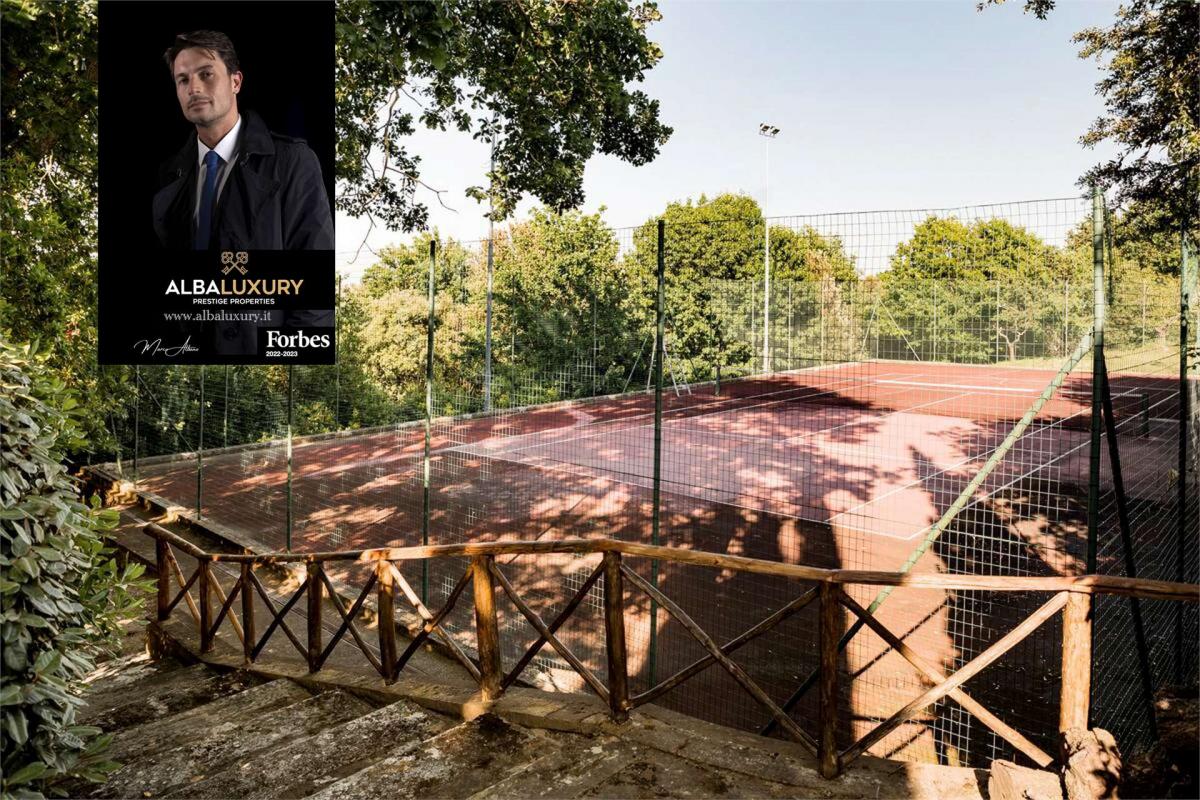 This splendid villa in the Tuscan hills with swimming pool, tennis court and fenced park of centuries-old oaks is located in a pleasant position with an enchanting view of the Tuscan hills including the castle of Lari and the plain where the city of Pisa is situated. The property consists of the main villa and an annexe as well as a swimming pool, a tennis court and a park of centuries-old oak trees.^The ground floor of the main villa includes an atrium, a living room, two small offices, a kitchen, a dining area, an informal dining room, a formal dining room, a daytime bathroom and a laundry room, while the first floor contains five bedrooms with bathrooms and a TV room. Another bedroom with its own bathroom is located on the second floor. All rooms are equipped with individually controlled air conditioning and free Wi-Fi.^The annexe, located next to the main villa, consists of a living room, a kitchen and two bedrooms, both with their own bathrooms.^Part of the property is an enclosed park of centuries-old oak trees and a field used for an ancient but still practised game called \bocce\.^The swimming pool is located right in front of the main villa and has a dedicated changing room with showers and toilets.^The tennis court is located in the villa's park of centuries-old oak trees and is equipped with a dedicated changing room with showers and toilets.^^^The villa is only a 5-minute walk from the medieval village of Lari and is strategically located for visiting the most important places in Tuscany such as Florence (60 minutes), Pisa (25 minutes), Lucca (40 minutes), San Gimignano (60 minutes), Siena (90 minutes), Viareggio - Forte dei Marmi (50 minutes), Livorno (40 minutes), Casciana Terme (10 minutes) and Montecatini Terme (60 minutes).^^^,