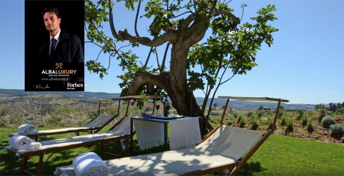 This beautiful farm is located in the charming municipality of San Casciano dei Bagni, on the border between Tuscany, Umbria and Lazio.^ Nestled in one of the most fascinating corners of Tuscany, near the Cetona Mountain, the farm covers an area of 25 hectares, comprising 8.5 hectares of arable land, 3.5 hectares of olive groves, 13 hectares of woodland and 1 hectare for the cultivation of saffron.^The property consists of a sumptuous villa of approx. 700 sqm and a dependance of approx. 70 sqm, both furnished in the traditional Tuscan style. ^The villa has five spacious rooms, each about 30 square metres in size, with en suite bathroom.^In addition to the rooms, the villa offers a reading room of over 50 square metres and a large living room of over 100 square metres with an imposing wall fireplace of over 3 metres. This is completed by a fully equipped kitchen of over 25 square metres. ^The annex, which is an integral part of the building, comprises a dining room with a fireplace and sofa bed, a kitchen, a double bedroom (with the possibility of adding a single bed) and a bathroom. ^An ideal place to live an authentic experience immersed in nature and Tuscan tradition.^^^San Casciano dei Bagni is nestled amidst the colours of the Valdichiana Senese, in a countryside rich in vineyards and olive groves, sites of artistic interest and charming villages, the perfect starting point for exploring one of Tuscany's best-known and most evocative areas.^To the north-west of San Casciano is the village of Celle di Rigo, whose name may derive from 'celle sacre' or 'celle vinarie', in reference to the caves underneath the village that are now used as wine cellars. Due to its strategic position, this small hamlet has been an important military and trade stronghold over the centuries. In the upper part of the village, the Torre di Celle is visible, the only remnant of the ancient castle keep.^A few minutes from San Casciano dei Bagni is Fonteverde, an elegant spa and 5-star resort, overlooking gullies and green hills. Built on a Medici portico built in the 17th century by Grand Duke Ferdinando I de' Medici, it has thermal pools fed by natural springs rich in properties with a therapeutic effect, which come to the surface at a temperature of 42\u00b0C.^Separating the Valdichiana from the Val d'Orcia rises Monte Cetona. ^Monte Cetona is the ideal place for those who love hiking or cycling. From the top of the peak, one can admire a splendid panorama of the Val d'Orcia and Monte Amiata on one side and the Valdichiana as far as Perugia on the other.^^^,