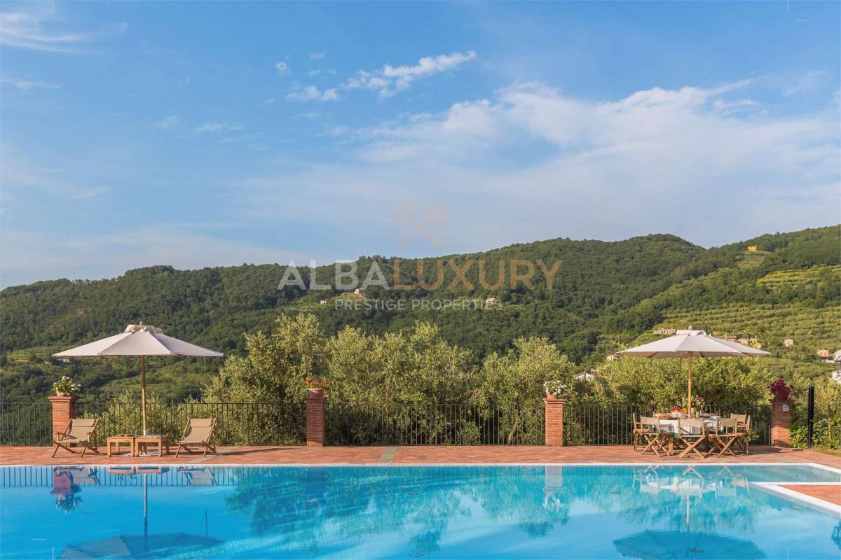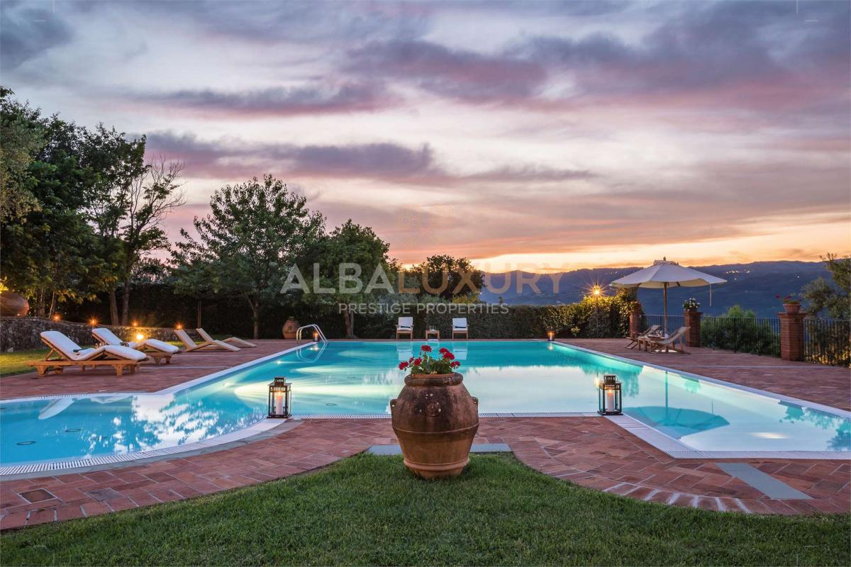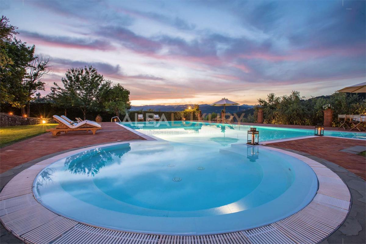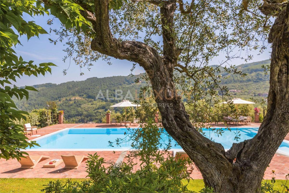 This typical Tuscan detached villa, built in the second half of the 18th century, is located on the last western slopes of Monte Albano, about 250 metres above sea level. It was originally composed of two rural houses that were joined^ . The exterior walls are clad in local stone like almost all the surrounding houses, thus preserving the original appearance of the building. ^The villa overlooks the typical Tuscan countryside, hills and olive groves, chestnut trees and oak trees, all immersed in an oasis of silence.^Enhancing the property is a beautiful swimming pool ^It is an infinity pool with a very large hydromassage area for 8 people Under the pool there is a large changing room with 2 showers and WC.^^The villa has a large living-dining room with a capacity of 14 persons and has a large 15th century fireplace, with armchairs, in a separate living room. From the living room one can enjoy a splendid view of the garden and the swimming pool, as well as the panorama of the old town of Monsummano Alto. Crossing another room, you enter the large Tuscan kitchen, with its fireplace and old-style oven. Also on this floor is a bathroom decorated with an antique tub and floor, but with a modern shower design. Next door is a bedroom with a double bed, which opens onto a covered terrace furnished with a table and chairs (actually, church pews) for dining, overlooking the pool and the hill towns.^^On the first floor, the rooms are furnished with antiques, paintings and Persian carpets. Opposite the entrance is a stone staircase leading to the bedrooms, with a beautiful 17th-century wrought-iron railing. The upper and middle landings of the staircase are decorated with terracotta tiles representing the Florentine lily. Terracotta rosettes made of antique bronze are painted on the ceiling. On this floor is the master bedroom (30 m2) with en-suite bathroom, equipped with a steam bath\/shower and a beautiful view of Monsummano Alto. There is also another bedroom, somewhat smaller, with views of the valley, olive groves, woods and swimming pool. This room shares a bathroom (with whirlpool tub and shower with light and aromatherapy) with the third bedroom, with two single beds that can be joined together to make a double bed on request.^All the rooms on the upper floor have beams and old terracotta floors, carefully restored by the owners.^^The structure i is perfectly divisible into two separate dwellings with separate services and comforts outside and inside. In fact at the beginning, at the end of the 18th century, two families lived there.^The 2 houses are totally independent because:^Outside they have several automatic entrance gates and parking spaces.^The garden is all open but each part of the Villa overlooks its own space.^^^Inside, an iron door can separate the 2 houses. Each house has its own fully equipped kitchen, washing machine, dishwasher, satellite TV, etc.^^The villa is in the most strategic location: far from the hustle and bustle of the cities but with easy access to the Tuscan 'musts'. In fact, 95% of Tuscany's landmarks can be reached within an hour and a half by car.^Montecatini Terme (5km.) 50 min. to Pisa and 50 min. to Florence by train. Monsummano Terme (2km.) is the nearest town and has 20,000 inhabitants and all the necessary services and shops etc.^Within a range of 15\/20 min. by car there are many places of interest to visit - the Grotte Giusti with their hot springs, one of the most famous in Italy, the quarries of Monsummano, the hills and mountains of Pistoia (skiing in winter), the Svizzera Pesciatina, countless churches, the Fucecchio marshland (of great interest for the local flora and fauna) and many small typical Tuscan villages, such as Montevettolini, Larciano, Lamporecchio, Vinci (where Leonardo was born), Montecatini Alto, Montecarlo etc)^,