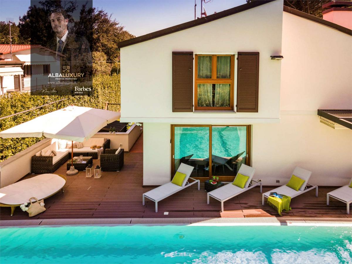 Alba Luxury is thrilled to offer exclusively this extraordinary independent villa in Tirrenia, an architectural gem that combines unparalleled elegance and breathtaking views of the Tyrrhenian Sea.^^Key Features:^^Elegant Design: The villa on four sides boasts refined design and unparalleled attention to detail.^Luxurious Interiors: Radiators in gold leaf, Teak parquet floors, and a window crafted by Robert Glass create unique interiors.^Captivating Sleeping Area: Three air-conditioned double bedrooms, including the master with a private terrace, ensure comfort and intimacy.^Space for Entertainment: The basement offers an open space with a billiard table and games, perfect for entertaining guests.^Dreamy Outdoors: 6x12m infinity pool with whirlpool, English lawn, barbecue, pizza oven, and garage complete the picture.^Works Carried Out (2017):^^Complete renovation with high-quality materials.^New roof, floors, electrical system, and heating.^Facades coated with special Capparol paint.^Heated infinity pool and nighttime lighting.^Prime Location:^Situated in picturesque Tirrenia, this property offers a luxurious lifestyle just steps away from the sea. Restaurants, services, and activities make the area lively and welcoming.^^Additional Services:^^Full alarm system on three floors and a surveillance system with 10 cameras.^Automatic generator for continuous power.^Ethernet and satellite wiring in all rooms.^Distances from Tirrenia to Airports:^^Pisa International Airport: approximately 15 km.^Florence-Peretola Airport: approximately 90 km.^This is a unique opportunity for those seeking perfection in luxury living by the sea. Contact us today for an exclusive tour and discover the timeless charm of this exceptional villa!,