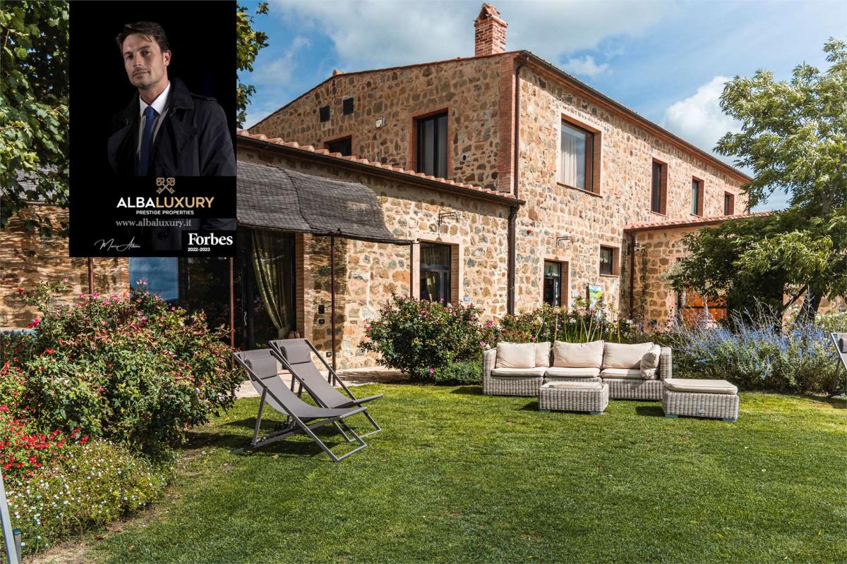 In the heart of Tuscany in the renowned Val D'Orcia, a location of excellence and Unesco heritage, in the close vicinity of towns of historical importance such as Siena, Montepulciano and Pienza.^We offer a structure organised with 4 suites with private bathroom, 2 independent flats, stables and riding stables with horses, jacuzi, panoramic restaurant and riding school.^The structure is composed as follows:^Hotel Reception, Restaurant, Hospitality and Horse Management, Warehouse with connections and predisposition for a future oil mill, Suites and flats for accommodation and predisposition for swimming pool.^It is the centrepiece of this estate. The ideal place for lovers of horse riding, nature and wellness. The structure with its elegant yet rustic appearance is surrounded by a 30-hectare green space where you can experience a dreamlike atmosphere, stroll around one of the three small lakes and magnificent landscapes. The structure is currently on two levels and is organised as follows: Hotel Reception (entrance), Restaurant (multipurpose room) with 50 seats equipped with a large fireplace and an equipped counter, professional kitchen (electric hotplates, kettle, fryer, professional ventilated oven, bimini, countertop refrigerators, column refrigerators, heated table for handling dishes), Service area (air-conditioned warehouse, bottling area, line preparation laboratory, column refrigerators blast chiller, oven, planetary mixer, stainless steel tables and cabinets), Warehouse with total preparation for the oil mill (drainage pipes, connections, adequate power, for insurcing project of the farm area connected to oil production), Laundry, guest and staff bathrooms, Showroom, relaxation area, tasting area used for the sale of the farm products. On the upper floor we find the accommodation area organised as follows: common area, hallway to access the 4 independent suites with their own bathroom and the 2 complete independent flats (2 bedrooms + living room with kitchen).^HOSPITALITY^HORSES^12 stalls inside the stable + 6 stalls in the paddocks with galvanised and painted steel fences. Equipped saddlery, Horse washing area inside the stable, Rectangle and Round drained with silica sand (Galvanised and painted steel fences) RESTAURANT^Equipped with a large counter (refrigerators, dishwashers, ice machines). Seats up to 50, large Tuscan fireplace with relaxation area. Professional kitchen serving the restaurant equipped with every comfort.^OUTDOOR SPACE^sofas, aperitif area, outdoor tables for serving, pizza oven, large barbecue.^AT THE SERVICE OF THE FARM^Several specialists in the sector have identified great income potential in this land. Starting with the primary resource, water, guaranteed by the right to draw from the two adjoining springs and the presence of the 3 lakes, with a total capacity of 6,000 m3, waterproofed with a layer of clay with overflow management with reinforced concrete structures draining downstream. The land has been worked to totally drain the rainwater into the lakes. The property has been equipped with an internal circuit of interconnected underground cisterns with a total capacity of more than 90,000 litres that, in addition to meeting the water needs of the farmhouses, are used for a water recovery circuit connected to the lake2 (whose water feeds the automatic watering system for the gardens and the watering of the horses). The farm is made up of: barn (prefabricated structure 20x12m h:8m), warehouse (prefabricated structure 8x3m h:2m), farm equipment (wheeled tractor 115hp, wheeled tractor 30hp, tracked tractor 115hp, 25-quintal digger, equipment, mulcher for cleaning prode, 3. 000 litres, 60-quintal wheeled wagon, 50-quintal wheeled wagon, 20-quintal wheeled wagon, clod breaker, ripper), gardening equipment (electric and petrol driven brush cutters, manual and sit-on weed cutters), electric olive harvesting equipment, vehicles (nissan navara, range rover defender, ford transit custom, toyota rav 4)^DEVELOPMENT POTENTIAL:^In the near future, the current production supported by the 4.4 hectares of productive olive grove (olive grove 1) will be increased substantially thanks to the second olive grove of almost 14 hectares.^The current owner has received approval for a LEP with an irrigation project for the entire new olive grove (olive grove 2). In addition to the RDP, a PIF with favourable conditions has been approved, including a project to build an oil mill and the possibility of terracing another 14 hectares of olive grove (currently used for spelt and legumes).,