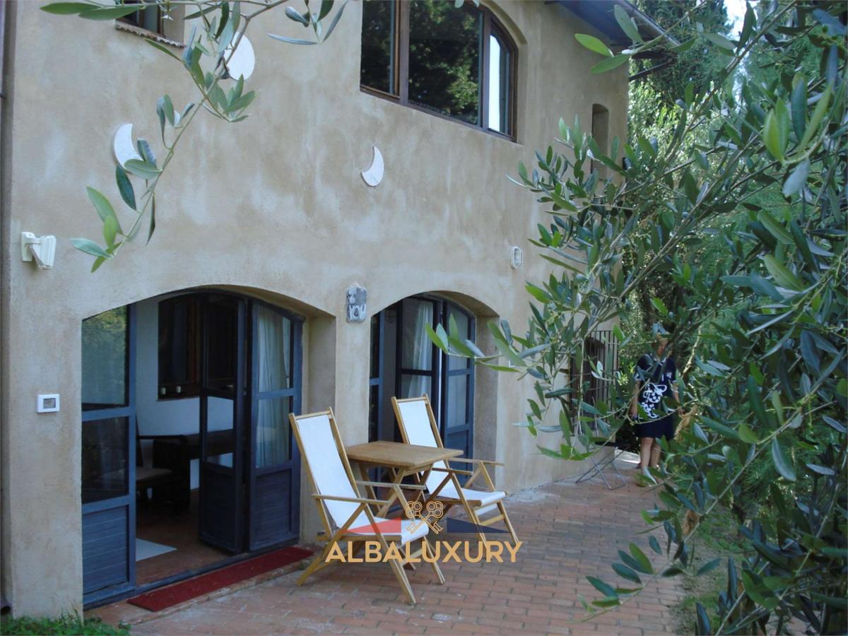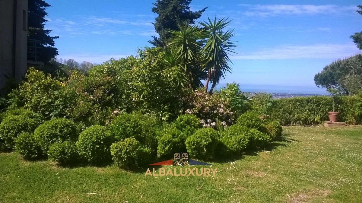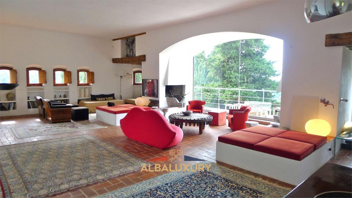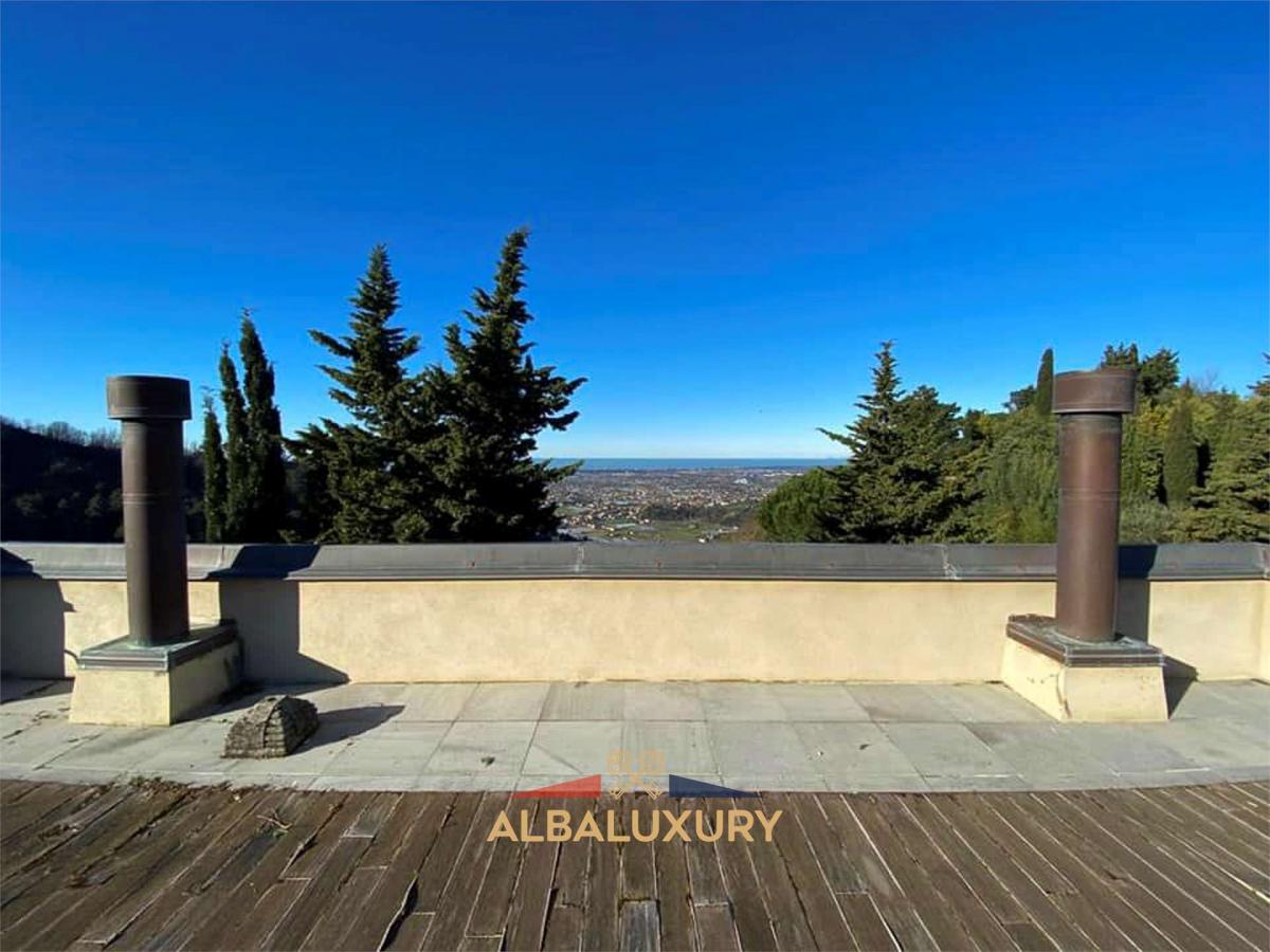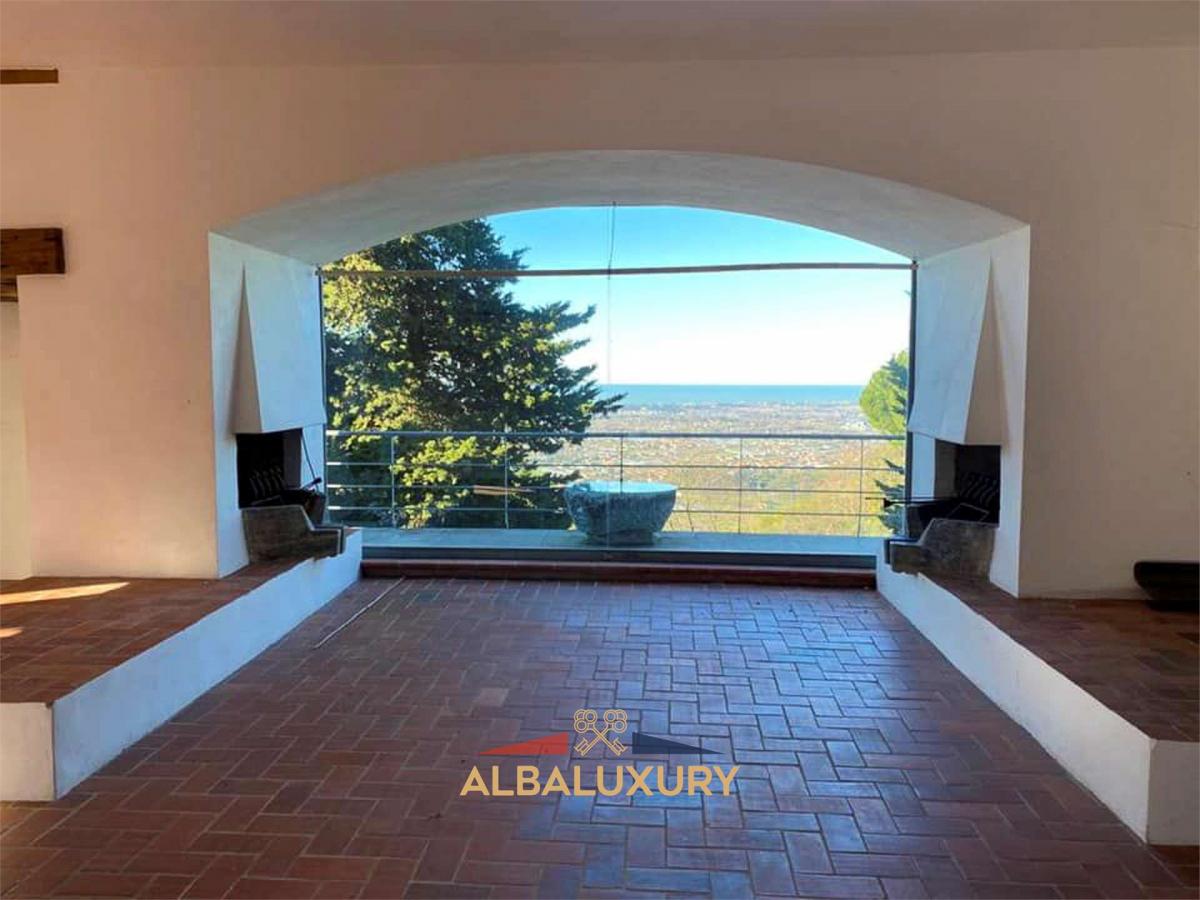 Located 3 km from Camaiore, accessible via a private road, the residence is immersed in a park of approximately 8000 sqm, situated on a hill with a view of a wooded valley and the sea. The nearest amenities are about 2 km away in Camaiore, while nearby there are charming historic villages, Viareggio and art cities such as Pietrasanta, Lucca and Pisa with its international airport. The villa was completely renovated in 2008 to a high standard, preserving its original features. The garden, which extends over about one hectare, is divided between an area with about 100 olive trees and a garden with tall trees, hedges and various species of Mediterranean plants. The building covers approximately 500 square metres distributed over 3 floors, plus the body overlooking the terrace that covers the entire property. The ground floor, which opens onto the garden, comprises two large bedrooms, each with bathroom and veranda, and a small flat with kitchen, bathroom, living room and bedroom. All rooms on the ground floor have direct and independent access to the garden. The first floor houses the spacious 140 sq. m. master bedroom with bedroom, walk-in wardrobe, living room with sea view, large bathroom with fireplace and vestibule. The kitchen with dining area and large fireplace has an independent access to the garden and an internal connection to the living room on the second floor. The second floor boasts a 140-square-metre living room with a window that stretches across the entire width, offering a panoramic view of the sea. Close to the window, there are two large, opposing fireplaces and a balcony with a view of the olive grove and the sea. On the same floor, the dining area features a circular stone table for 20 people.^The third floor includes a room\/study of about 40 sqm with bathroom and windows on four sides, with access to the large 100 sqm terrace. All the floors are connected by a spacious circular staircase.Tuscany is one of the best known and most appreciated areas by visitors from all over the world for its typical succession of unique landscapes, characterised by gentle green hills, rich in dense woods, large expanses of vineyards and olive groves, small villages, medieval castles and wineries where it is possible to taste the best wines in the world.,
