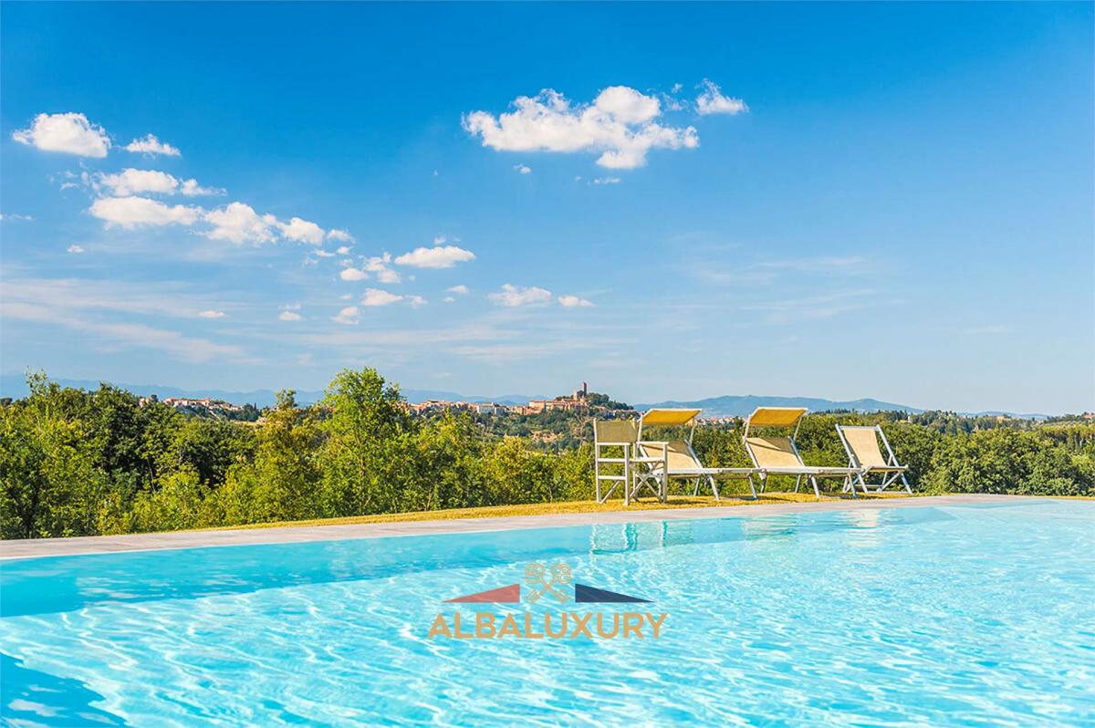 Pr\u00e4chtige Villa aus dem 18. Jahrhundert in der Toskana, in den H\u00fcgeln von San Miniato, die auf den Ruinen eines alten mittelalterlichen Schlosses steht, mit einem Park, einem Schwimmbad, das vollst\u00e4ndig von Gr\u00fcn umgeben ist, mit Blick auf das alte Dorf San Miniato und die Kette der Apenninen, 4 Wohnungen, ein Restaurant und einen gro\u00dfen Saal, der aus den ehemaligen Kellern gewonnen wurde. Das Anwesen wurde im Jahr 2013 komplett renoviert, sowohl intern als auch extern, wobei die alten architektonischen Merkmale erhalten wurden. Die ca. 800 m\u00b2 gro\u00dfe Villa ist in 4 Wohnungen im Erdgeschoss und im ersten Stock unterteilt, die mit hochwertigen Materialien restauriert wurden und \u00fcber jeglichen Komfort, Kamin und handgefertigte Terrakottab\u00f6den verf\u00fcgen. In den ehemaligen Kellern wurde ein Restaurant eingerichtet, das aus drei kleinen R\u00e4umen f\u00fcr bis zu 40 Personen und einem gro\u00dfen Saal mit einem sch\u00f6nen, fein restaurierten Ziegelgew\u00f6lbe und charakteristischen Ziegel-\/Stein-\/Kalkw\u00e4nden besteht; der Saal bietet Platz f\u00fcr 20\/25 Personen. Das Anwesen wird durch einen sch\u00f6nen gro\u00dfen Garten, einen Swimmingpool mit Panoramablick und ein 20 Meter von der Villa entferntes, zu restaurierendes Nebengeb\u00e4ude von ca. 500 qm erg\u00e4nzt. Im Umkreis von 50 km sind die wichtigsten toskanischen Kunstst\u00e4dte wie Florenz, Pisa, Lucca und Siena leicht zu erreichen. Die Toskana ist eine der bekanntesten und von Besuchern aus aller Welt am meisten gesch\u00e4tzten Gegenden f\u00fcr ihre typische Abfolge einzigartiger Landschaften, die sich durch sanfte gr\u00fcne H\u00fcgel mit dichten W\u00e4ldern, weite Weinberge und Olivenhaine, kleine D\u00f6rfer, mittelalterliche Schl\u00f6sser und Weing\u00fcter auszeichnen, in denen man die besten Weine der Welt probieren kann.,