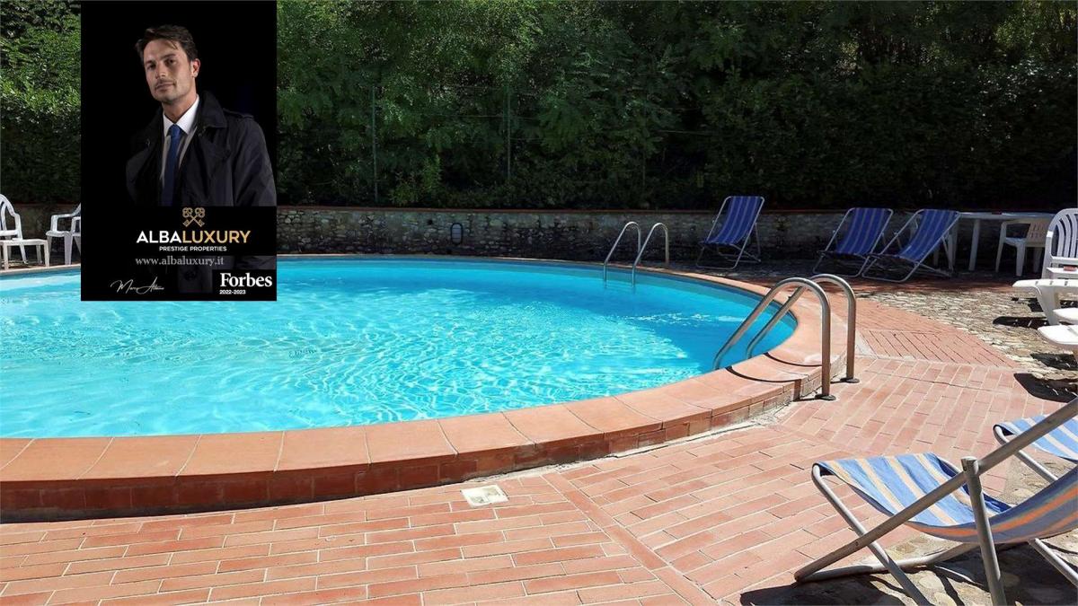An extraordinary investment opportunity located in the heart of the renowned Chianti Classico region, a true sanctuary of elegance and beauty. This spacious estate, covering a vast area of 24 hectares, enchants with its varied natural beauty, lovingly embracing a thriving vineyard, a productive olive grove and a lush forest, creating a simply magical setting. Advantageous Location: The estate enjoys a privileged position in the heart of the renowned Chianti region, and is strategically located a short distance from renowned art cities such as Siena and Florence. This location allows easy access to the cultural and historical wonders that characterise this fascinating region. Giardino Paradisiaco: The surrounding land covers an area of 24 hectares, of which no less than 4.3 hectares are devoted to vineyards, 2 hectares to olive groves with no less than 550 productive olive trees, and 17 hectares of fascinating forest, including a truffle ground. The private garden is enriched by the presence of a magnificent swimming pool and offers various outdoor areas, including verandas, porches and a spacious terrace, as well as an oven and a barbecue, creating an ideal setting for moments of relaxation. Imposing Villa: The villa, which covers an area of 239 square metres, is a classy Tuscan residence on three floors. On the ground floor, you will find a perfectly equipped kitchen, a spacious dining room and a generous living room, as well as a bedroom and a bathroom. The sleeping area, located on the first floor, comprises three bedrooms and four bathrooms, offering spectacular views of the charming Tuscan hills. The top floor houses a large attic that can easily be converted into a spacious living room. Under the outdoor terrace, a room of approximately 30 square metres is concealed, ideal for conversion into a private spa or any other customised solution. Refined Features: Farmhouse Restoration: The estate features a renovated farmhouse of approximately 450 sqm, which has recently undergone careful restoration. The farmhouse has been skilfully divided into four separate self-contained flats, each with kitchen, cosy living areas, bedrooms and private bathrooms. In addition, a wine cellar, built in 1992, and a laundry room complete this part of the property. In 2001, a renovated barn was converted into a farmhouse, which is responsible for supporting the production activity. High-Quality Condition and Details: The flats on the farm underwent improvements between 2014 and 2019, preserving the traditional Tuscan style. The villa, in recent years, has benefited from a magnificent renovation, preserving the typical Tuscan architectural features, such as the ceilings with exposed beams, and enriching the rooms with refined finishes in the bathrooms, made with fine tiles. ,