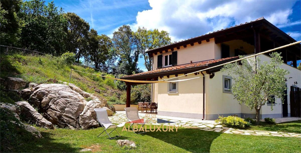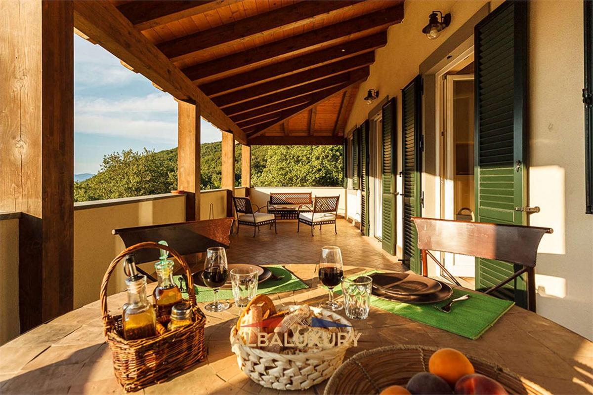 Characteristic panoramic estate in Tuscany in the area of the Colline Metallifere National Park, in one of the areas with the least light pollution in Italy, with 20 hectares of private land, swimming pools, olive groves, meadows, forest and photovoltaic system. The estate is divided into the manor villa, a hamlet consisting of three villas with six flats and a stone building next to the villa on the eastern side of the garden. Manor villa detail: this is an old farmhouse perched on a panoramic ridge with a surface area of approximately 400 square metres, with a 1000-square metre garden from which there is access to the private swimming pool. Borgo detail: this is a property complex consisting of three villas with six flats with a total surface area of about 700 square metres and a panoramic swimming pool. A hamlet that seems to rise from the woods in the middle of the Bandite di Scarlino nature reserve. The villas are totally eco-friendly and built only of wood, heated with the energy of the sun and pampered by a large saltwater infinity pool. The flats in each villa can accommodate from 2 to 7 people, with a private garden or patio. They have fully equipped kitchens, cosy lounges with fireplaces and large bedrooms. Completing the property is a photovoltaic system with a power output of 20 KWp serving the entire property, installed on a 200-square-metre canopy used as a shelter for agricultural equipment and vehicles. We are in the area of the Colline Metallifere National Park, a UNESCO Geopark, which tells of the area's mining and geological history. The cities of art and culture, Etruscan sites and medieval villages, spa areas and the uncontaminated blue sea of the Maremma, Siena, Pisa, Montalcino and Massa Marittima are all just a few kilometres away. If you love nature, you can organise walks along the paths in the Bandite di Scarlino Park, or you can enjoy the crystal-clear blue sea of Cala Violina or the warm waters of the thermal baths of Saturnia, Calidario and Petriolo.,