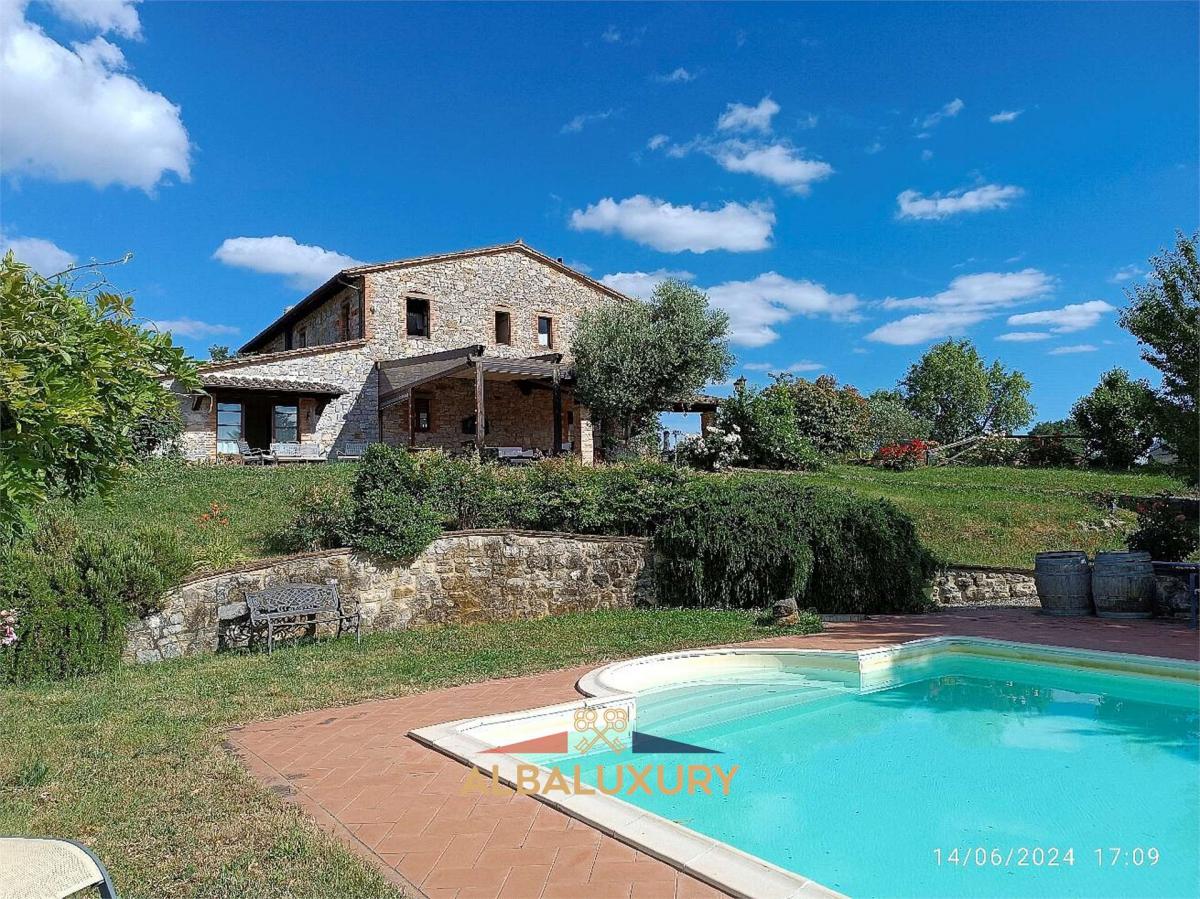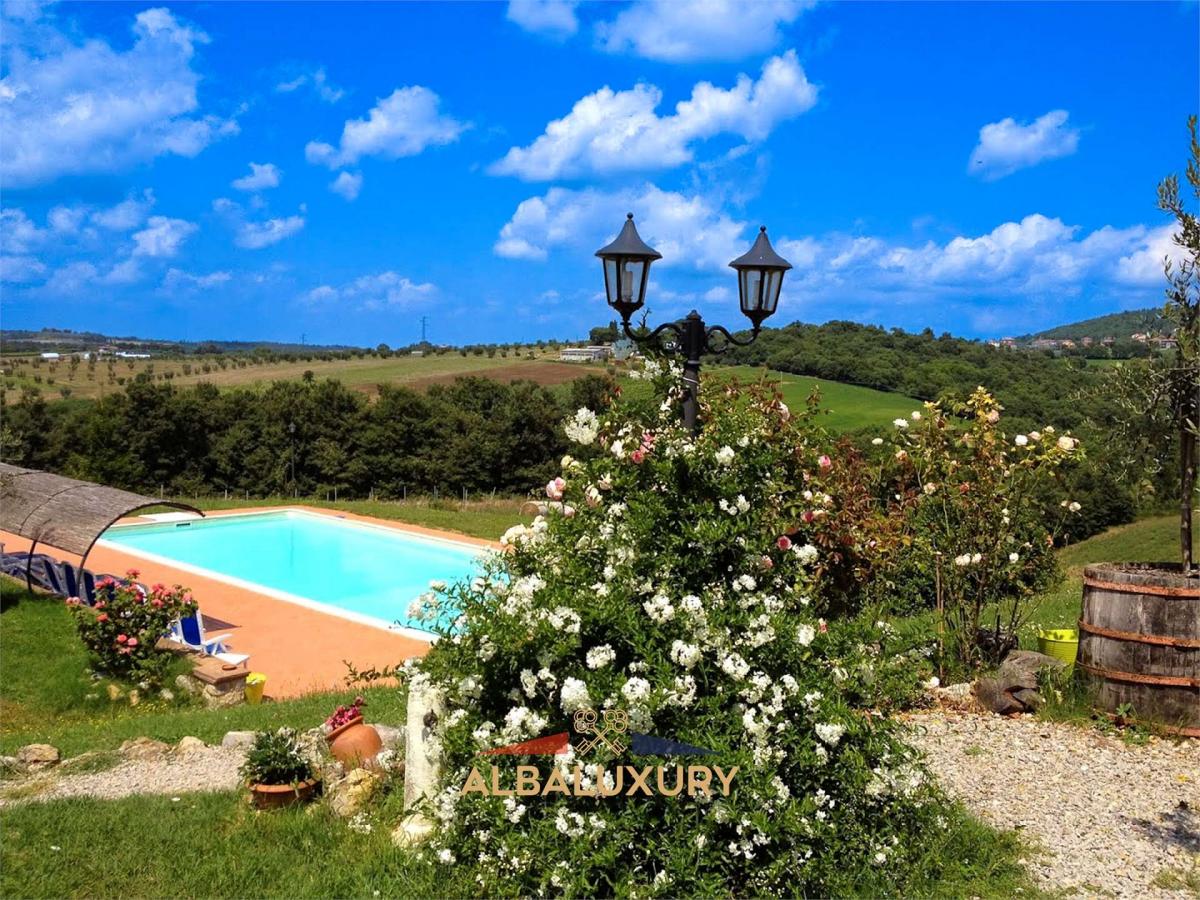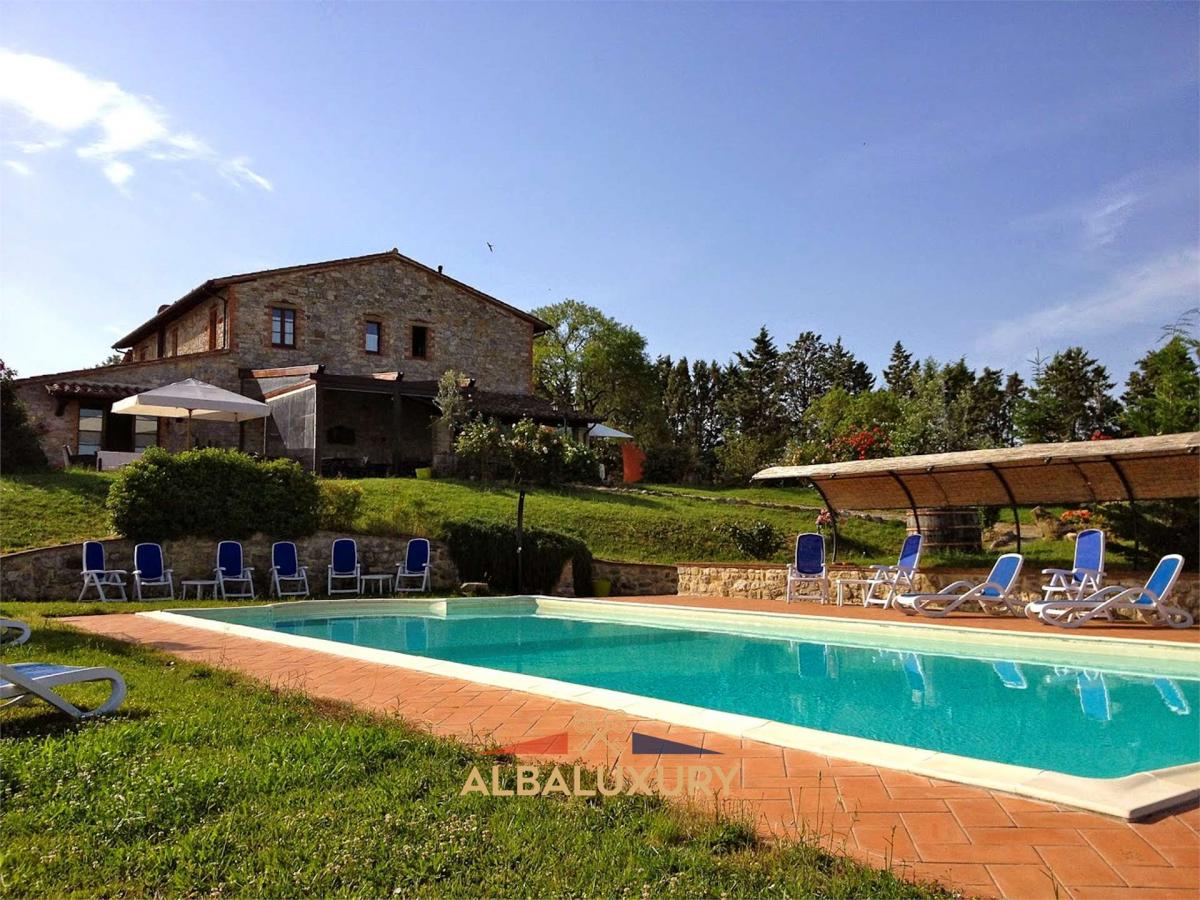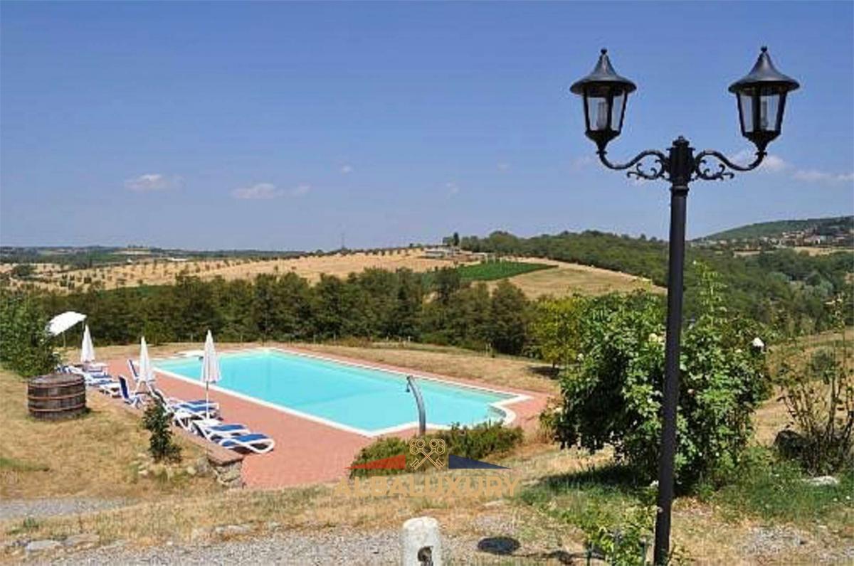 Description in English:^A splendid property in Umbria that stands on the enchanting panorama of two small medieval villages, Montegabbione and Monteleone d\u02bc Orvieto. A peaceful place amidst green hills and woods where one can relax and visit medieval villages and towns rich in art and beauty. A property restored in 2005 with a swimming pool and 13 hectares of land suitable for both private and receptive use. To date, the property is divided into:^1) Building A (on two levels): on the ground floor in the old hall we find the restaurant with fireplace, professional kitchen, reception, storeroom, pantry, laundry and bathrooms for guests and staff. On the upper floor we find the master flat and one of the five flats (two-roomed) intended for agritourism. The master flat consists of 2 bedrooms, living room, kitchen and two bathrooms. ^2) Building B of approximately 200 square metres (on two levels): in this section we find 4 two-room flats (of which 3 on the ground floor) each with bedroom, living room and bathroom. The rooms have an independent entrance and private garden areas^3) Additional outbuildings: there is a former barn renovated in 2013, an open but covered room now used as a relaxation room. Also present are a warehouse, old stable, woodshed, storage room, garage. The property is completed by a beautiful panoramic swimming pool (6 x 14 metres) and land of about 13 hectares, including 4,000 square metres of garden, barley and alfalfa crops, as well as a vineyard of about 1 hectare of Pinot Noir and 140 olive trees. Umbria is an Italian region bordering Tuscany, Lazio and Marche. Often referred to as the green heart of the country, the region is famous for its medieval hilltop towns, dense forests and local cuisine, especially wine and truffles.,