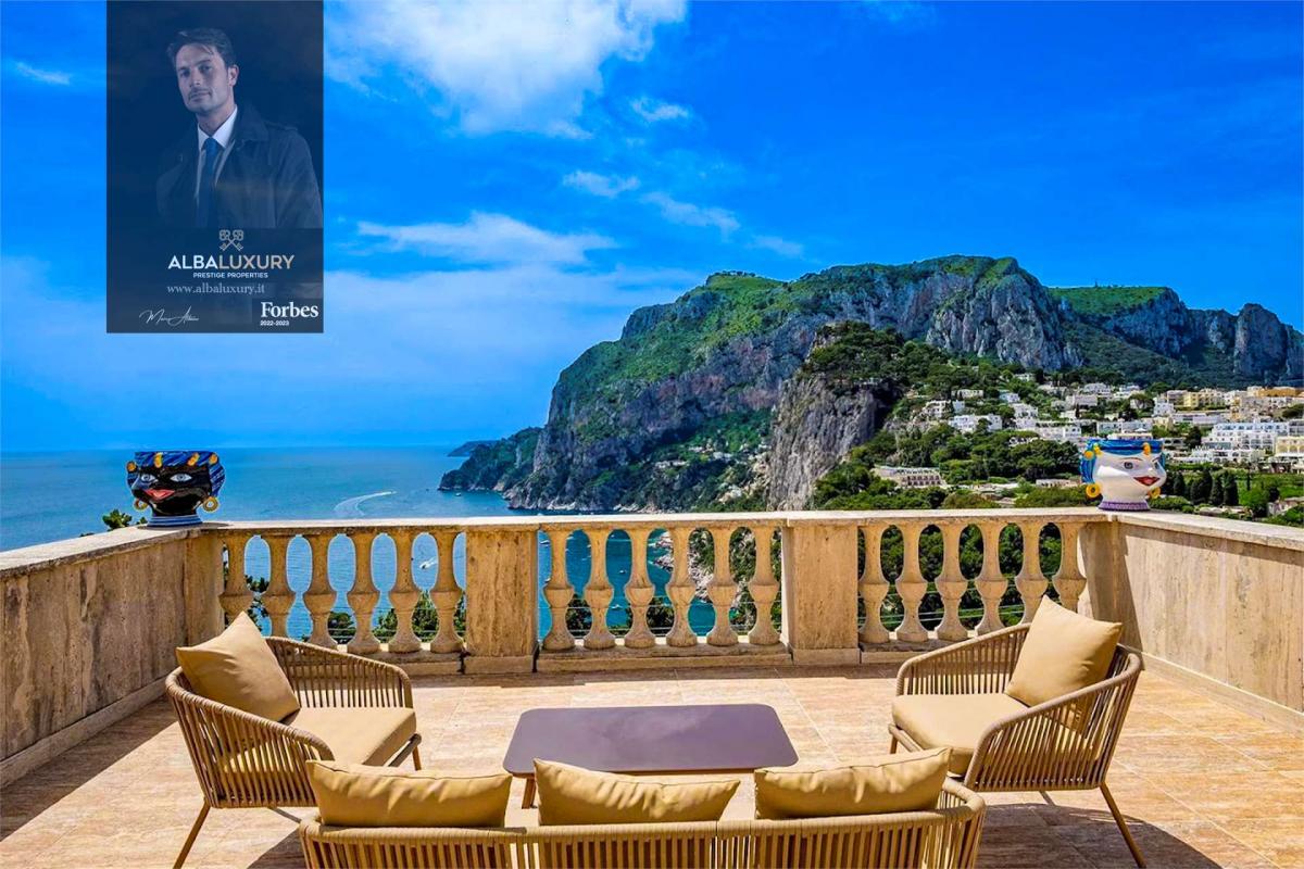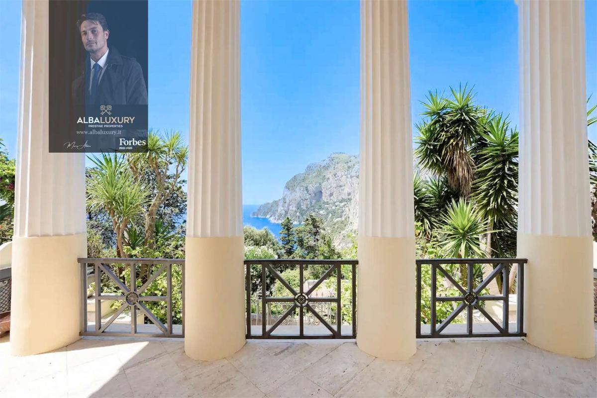 We are pleased to offer for sale a splendid villa located in the heart of the renowned Via Tragara, which connects the center of Capri to the famous Faraglioni viewpoint. Built in 1920 at the request of the painter Goffredo Paolucci Sinibaldi, this unique residence is characterized by four imposing Doric columns that adorn the facade, evoking the image of an ancient temple.^^The Residence^Capacity: Up to 8 people^Features:^Representative Living Room: Spacious 120 sqm with ceilings over 6 meters high^Fully equipped kitchen^Two outdoor areas^Accommodation:^2 family suites, each with a double bed and ensuite bathroom on the ground floor^Second double bed with service bathroom on a loft overlooking the living room^The Penthouse^Capacity: Up to 7 people^Features:^Bedrooms:^3 doubles^1 single^Bathrooms: 4 ensuite^Fully equipped kitchen^Elegant double living room^Level terrace: Breathtaking panoramic views of Capri island, from the Piazzetta to Marina Piccola^General Features^Style: Furnished in typical Capri style^Renovation: High-quality materials^Total capacity: 15 people^This exclusive villa represents a rare opportunity for those seeking a luxury property in Capri, with a perfect balance of historical charm and modern comforts. Its prime location and spectacular views make it ideal for a private residence or prestigious investment.^^For more information and to arrange a visit, please contact us.^Don\u2019t miss the chance to own a piece of history and beauty on the enchanting island of Capri.^^,