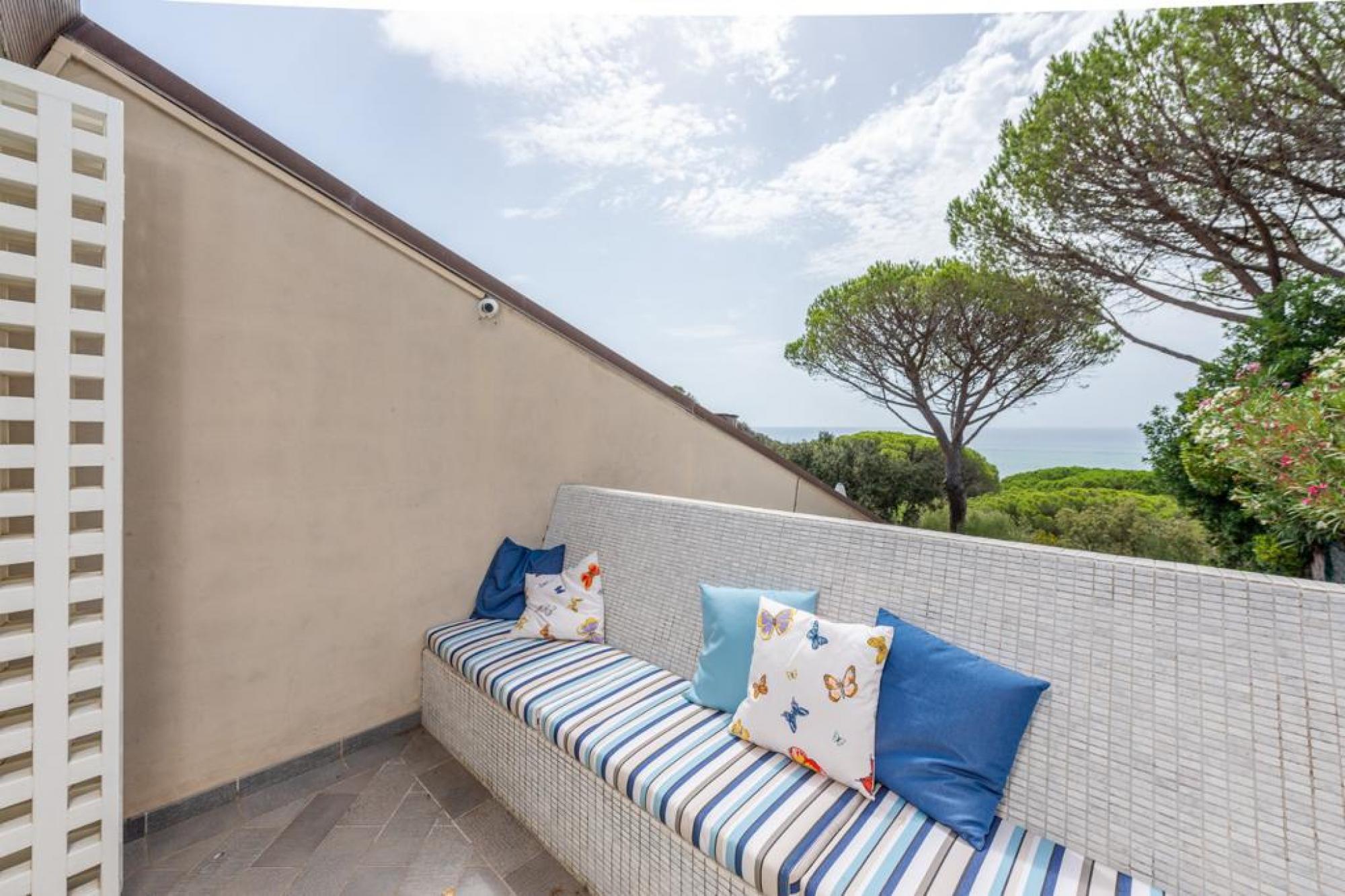 - From the veranda, you access a further solarium area with a gazebo and landscaped garden, offering breathtaking views of the historic village of Castiglione della Pescaia.