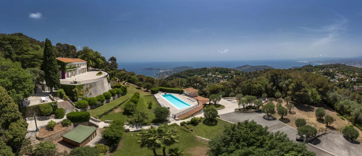 On the heights of Villefranche-sur-Mer, overlooking the Cote d'Azur and offering an exceptional panorama from Saint-Jean-Cap-Ferrat to the Lerins islands and the Esterel massif, this unique property is set in nearly 3 hectares of parkland and offers a total living area of around 1,600 m2.