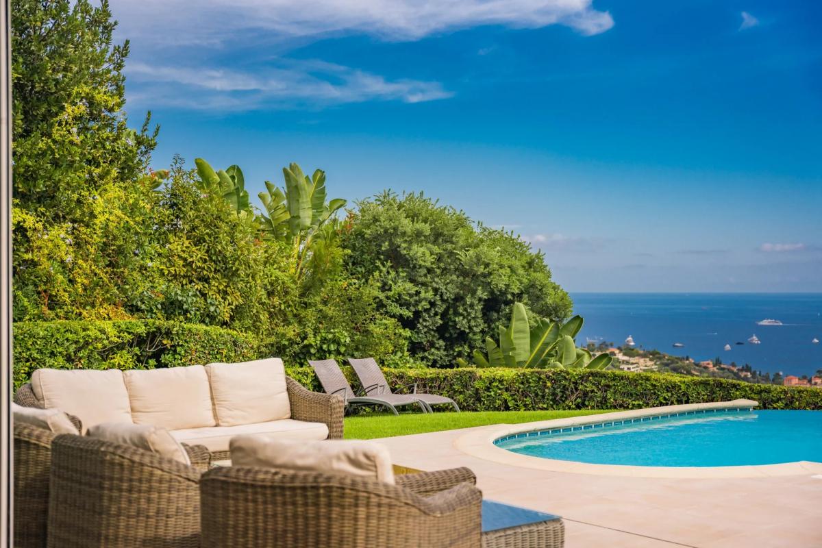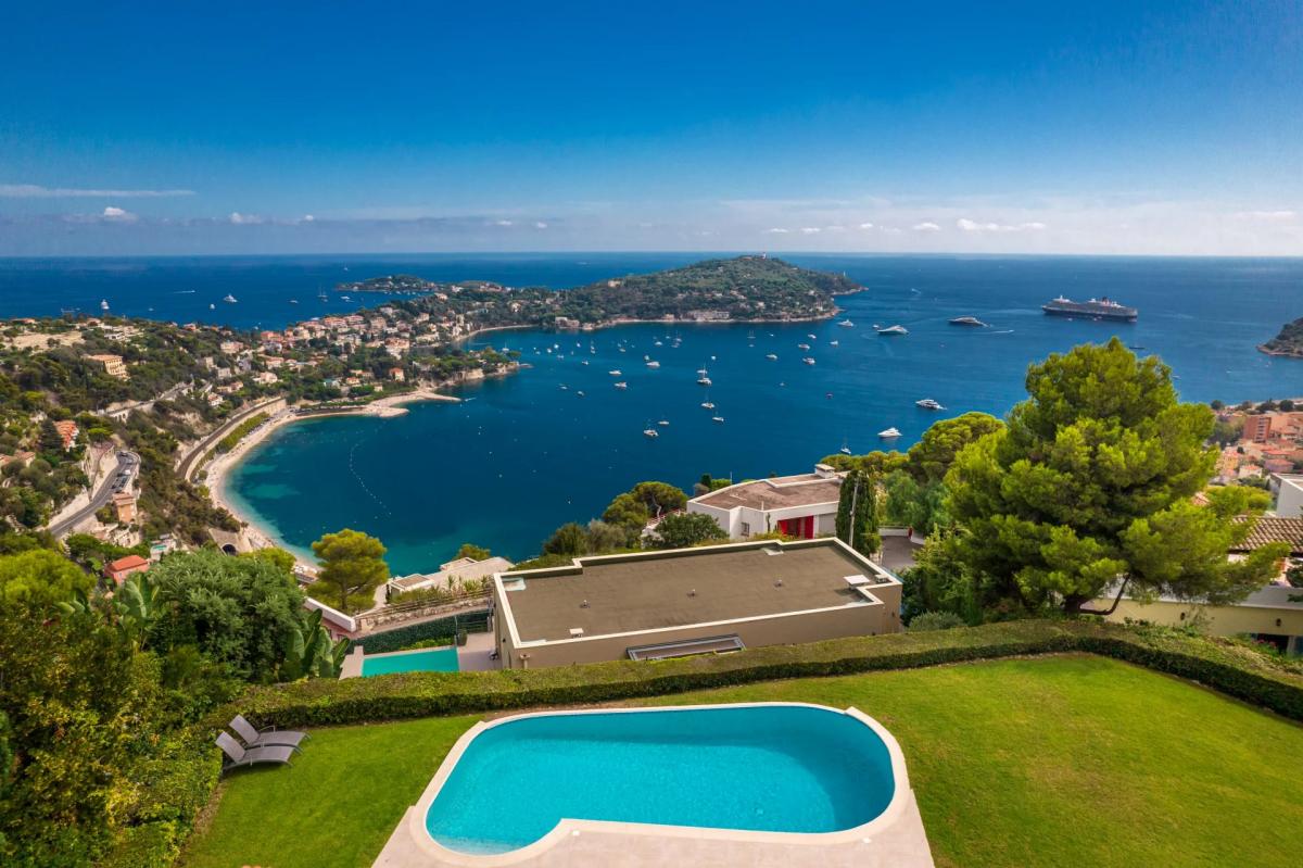 ideally nestled on a flat plot of 1580 m2, this villa offers breathtaking panoramic views of the Bay of Villefranche-sur-Mer and Cap Ferrat.