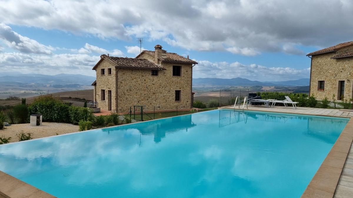 In the unspoiled hills of Volterra, in a country complex with just 4 units, with shared swimming pool, a charming typical Tuscan villa with garden and A+ energy rating.The hilltop complex is easily accessible and has a stunning 360° panoramic view of the countryside and Volterra town which is only 7 km away.