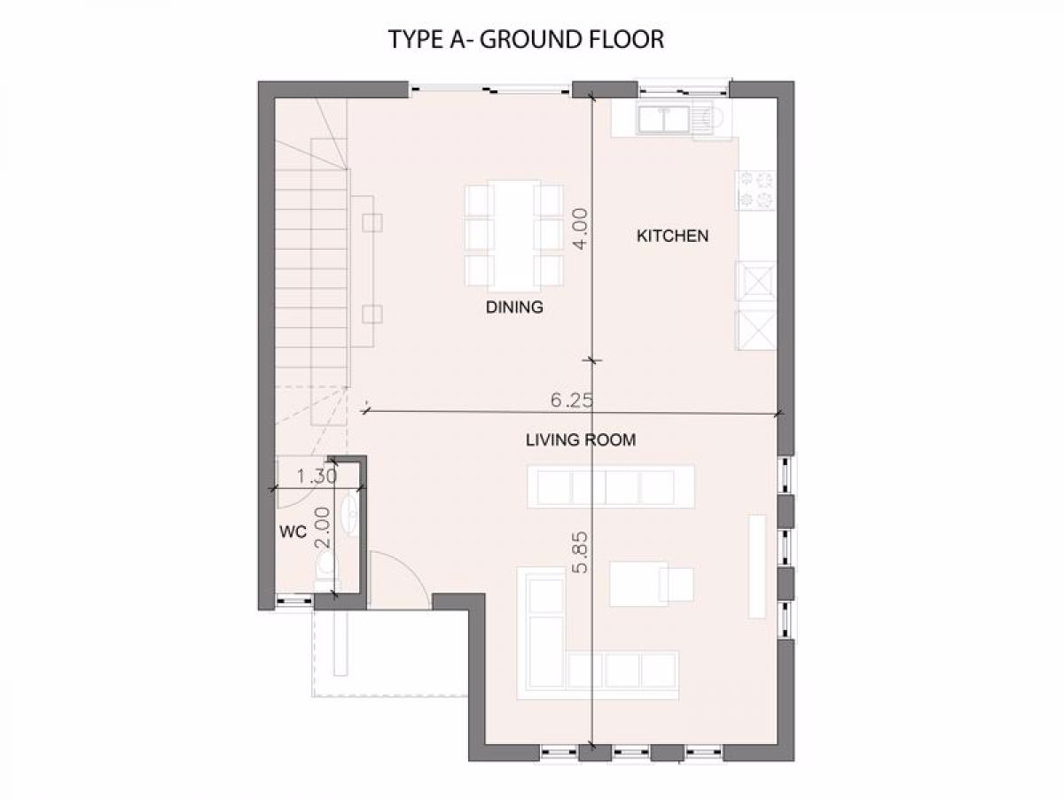 - Open plan living, dining and kitchen area