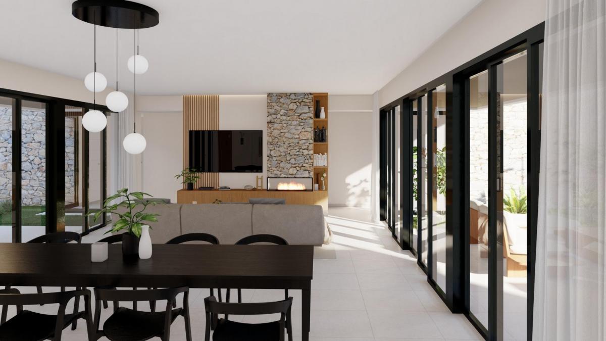New Build exclusive luxury villa located within a beautiful vineyard in Yecla, Murcia. The project offers modern farmhouse-style villas built on plots of 20,000m2, with olive trees and a vineyard with a production of up to 10,000 kg of grapes, which makes it possible to produce your own wine. Different distribution models are offered, although it is also possible to make a totally personalized design. The standard models present a spacious house on one floor with six bedrooms, five bathrooms, open spaces full of life, where the "interior" and the "exterior" merge perfectly and natural light dominates. The day area has an open design, combining kitchen, dining-room and living room in a large space with large windows that give access to the outdoor area with large terraces, the garden and the private pool. The interior patio in the centre of the house represents the perfect integration of the architecture with the natural environment. The entire house includes high quality materials in the style of a traditional Spanish farmhouse with a modern touch; highlighting a high thermal and acoustic insulation and energy efficiency A, noble and natural materials, such as wood and natural stone, in combination with stucco, concrete and glass for a perfect integration in the natural environment. in addition, it includes 2 parking spaces, a swimming pool and a customizable garden according to m2 and type of harvest. A house that adapts to everyone and is highly sustainable in terms of water use, energy consumption (solar panels) and thermal insulation, among other things. A unique location with a lot of privacy that allows you to be in direct contact with nature and enjoy a healthy and eco-sustainable lifestyle, but only fifteen minutes by car from the centre of Yecla. One of the most important cities in the province of Murcia, which has all the necessary services for day to day life, as well as a wide cultural and gastronomic offer. it is the ideal environment for hikers, mountain bikers and other outdoor enthusiasts. The area is very well connected by road, being able to reach Murcia and Alicante in just over 1 hour. Yecla, one of the most exceptional destinations of the Region, is situated in the far North, or better said, in the far Northeast. This is a land of mountains, good wine, history, culture and legends. it is no wonder that Spanish writers such as Azorin or Pio Baroja were fascinated after getting to know it.